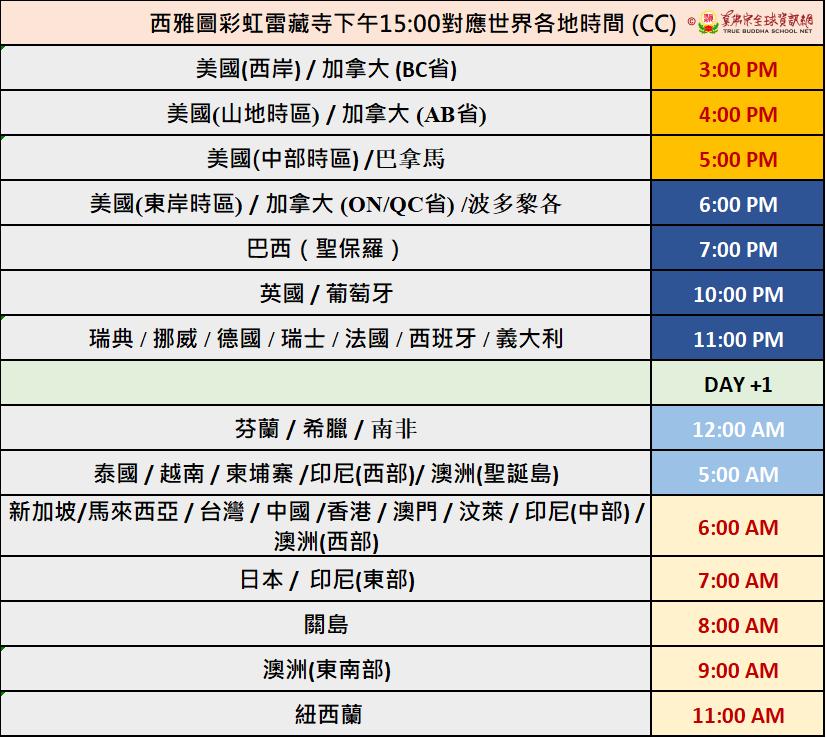 溫馨提醒:歐洲調時,西雅圖雷藏寺和彩虹雷藏寺同修法會世界對照時間表更改