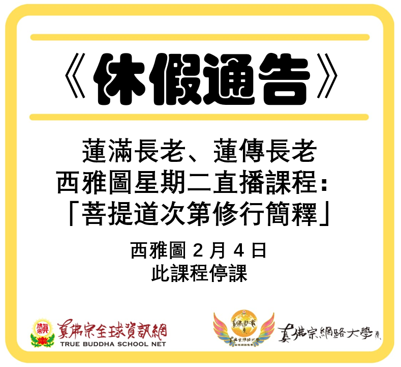菩提道次第修行簡釋休課通告