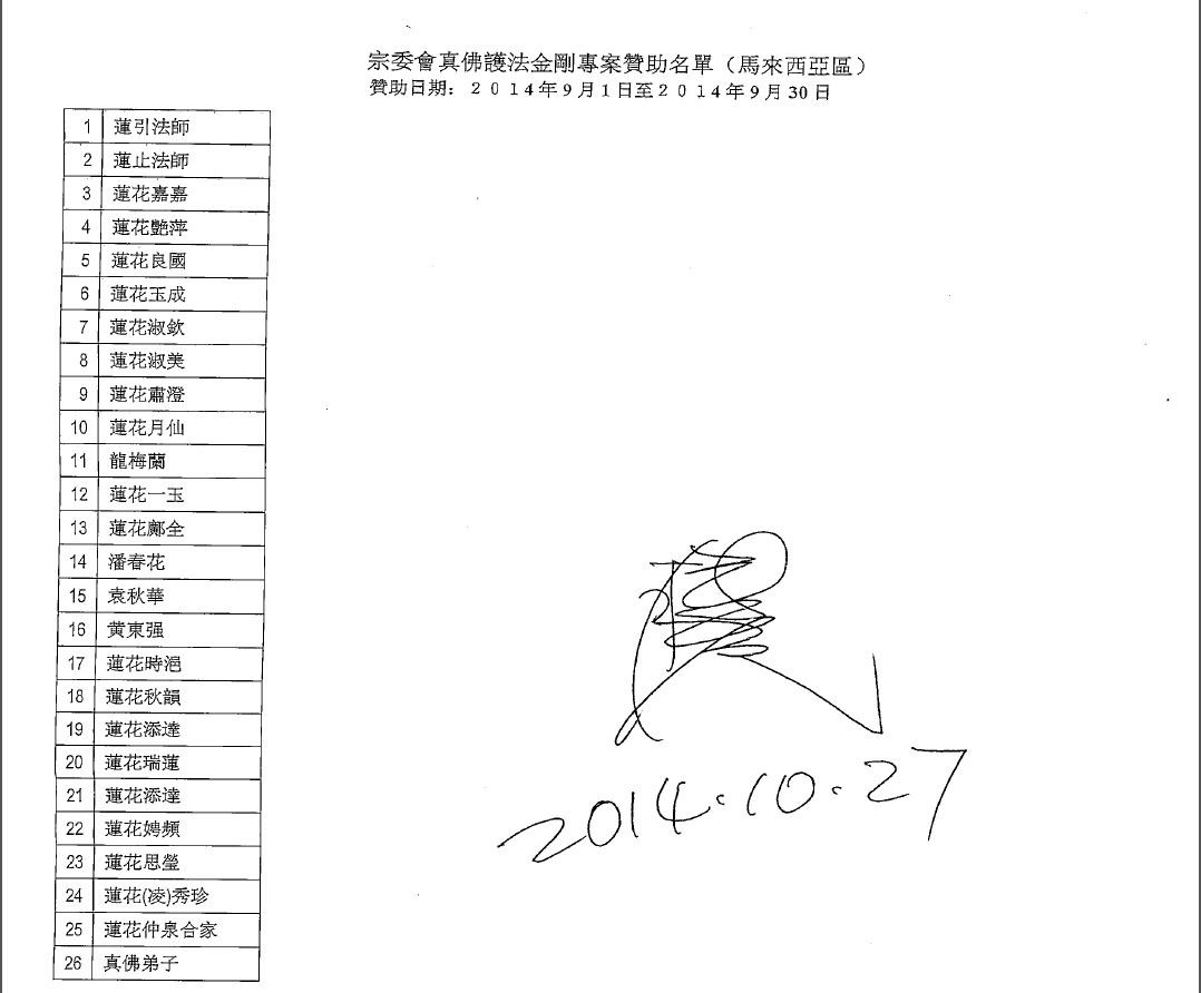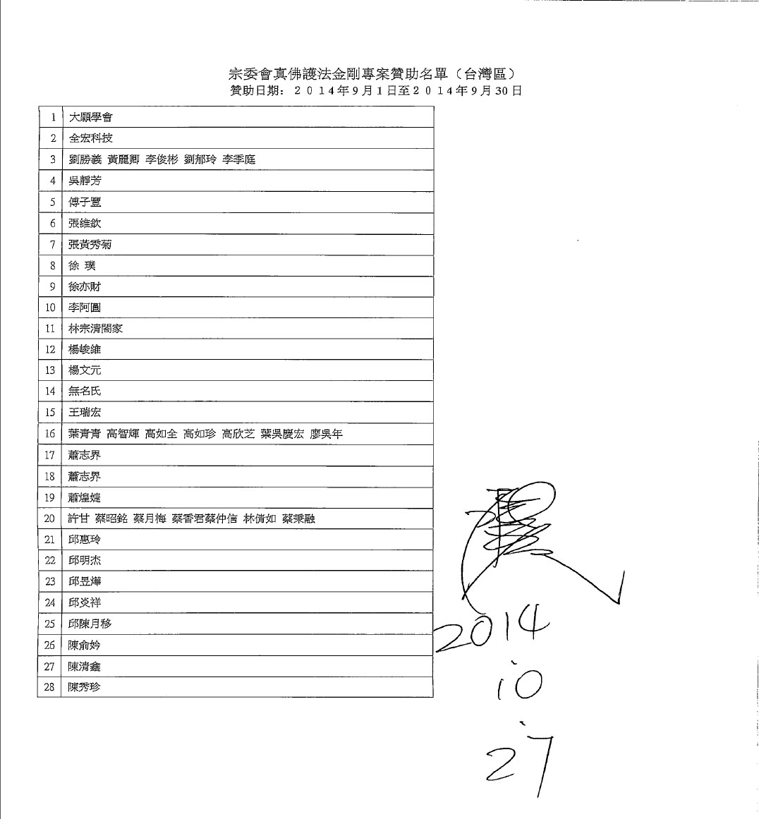聖尊蓮生活佛 盧勝彥法王慈悲加持2014.9.1 ~ 9.30【真佛護法金剛榜】贊助者名單【真佛護法金剛榜】贊助者名單