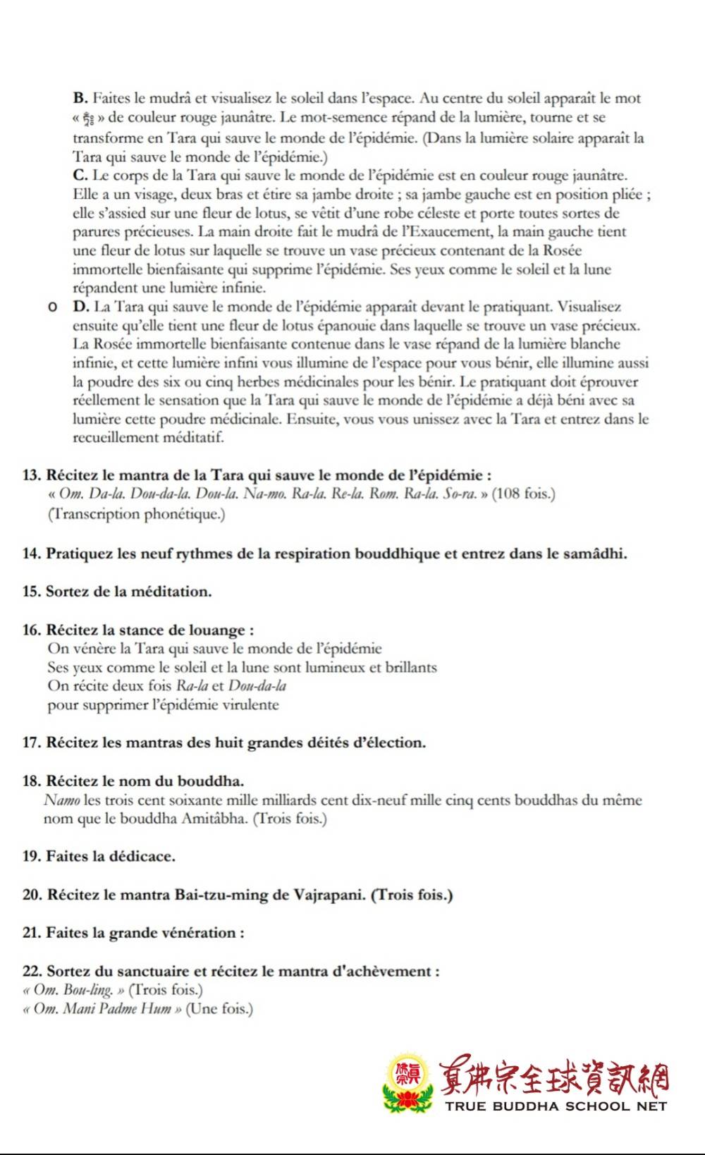 「除瘟疫度母念誦法」法文版儀軌 Méthode de la Tara qui sauve le monde de l’épidémie