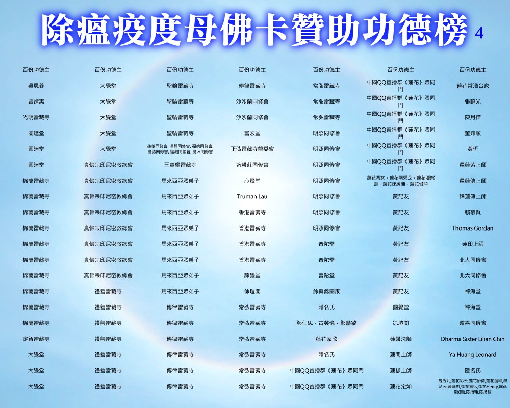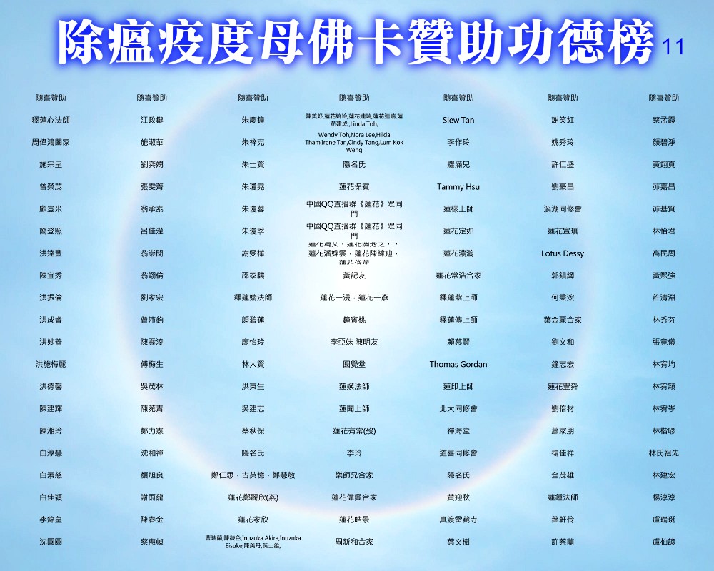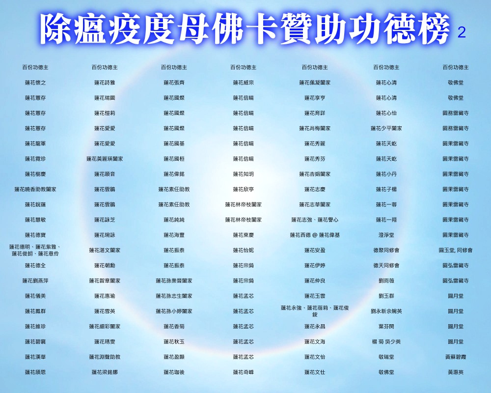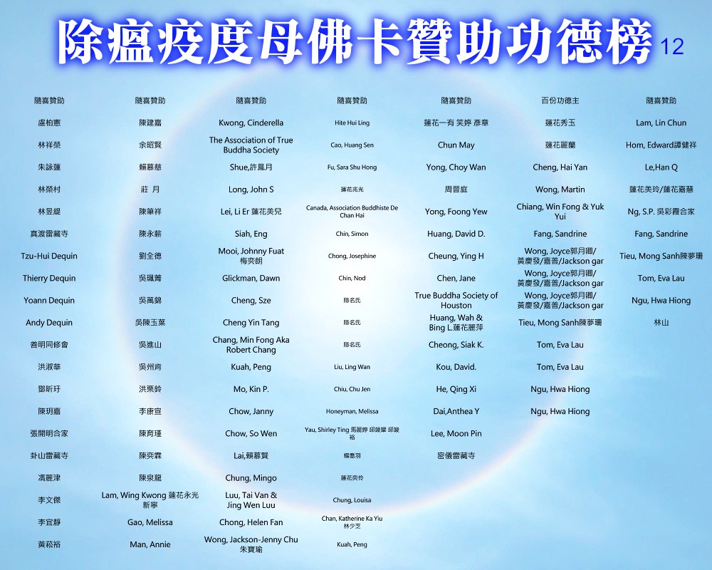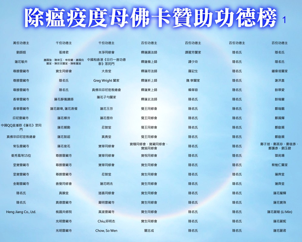 【除瘟疫度母佛卡贊助功德榜】