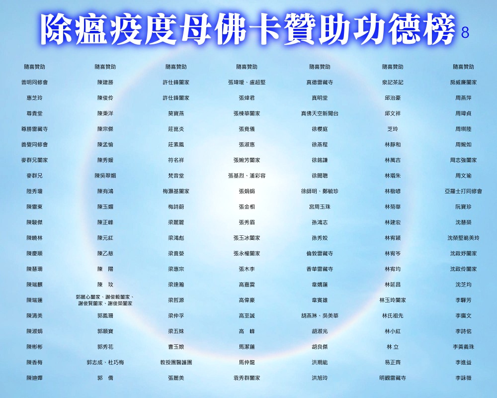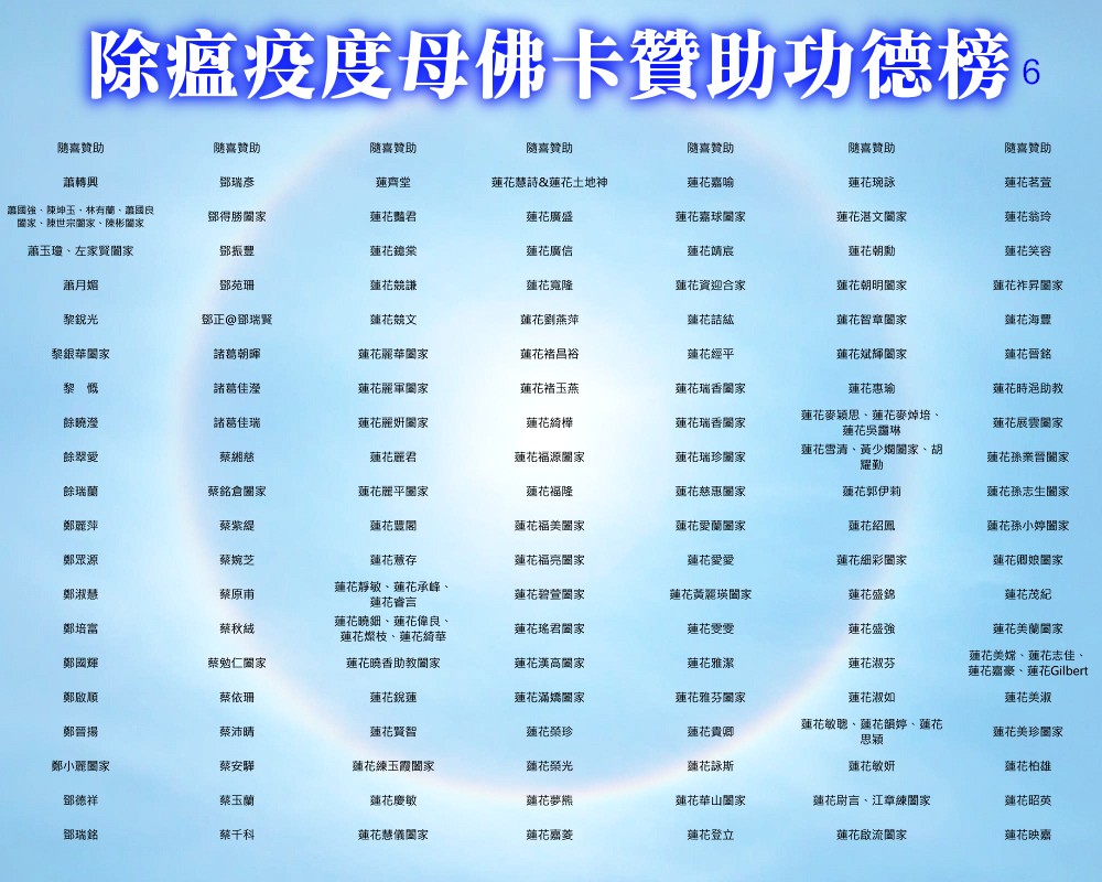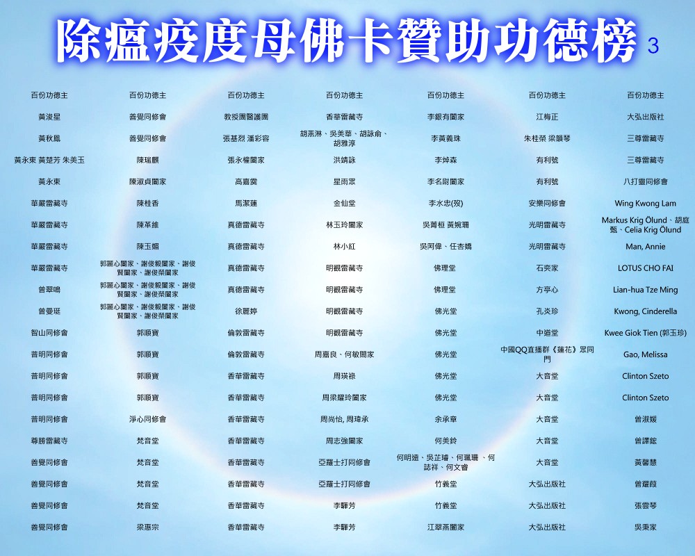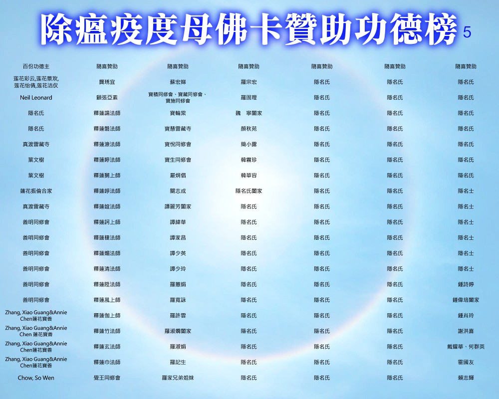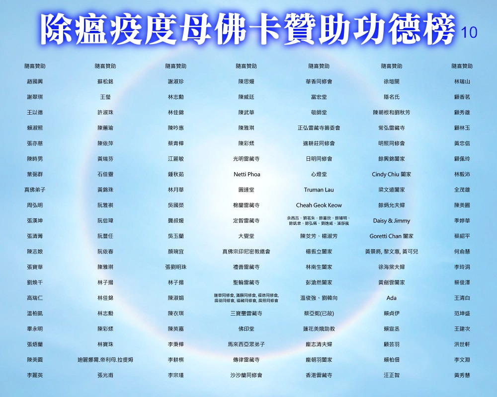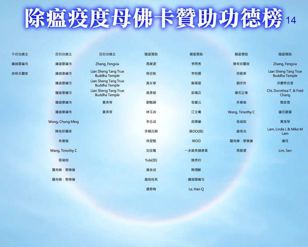【除瘟疫度母佛卡贊助功德榜】