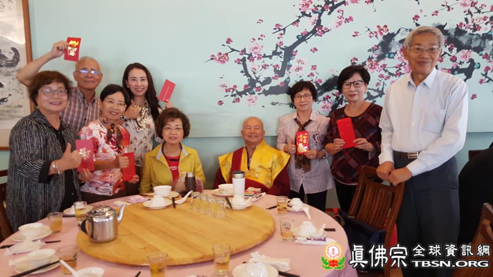 師尊師母更帶來精美的禮品,送給師姑們合家。師尊亦一一給大家紅包,無限喜氣連連。