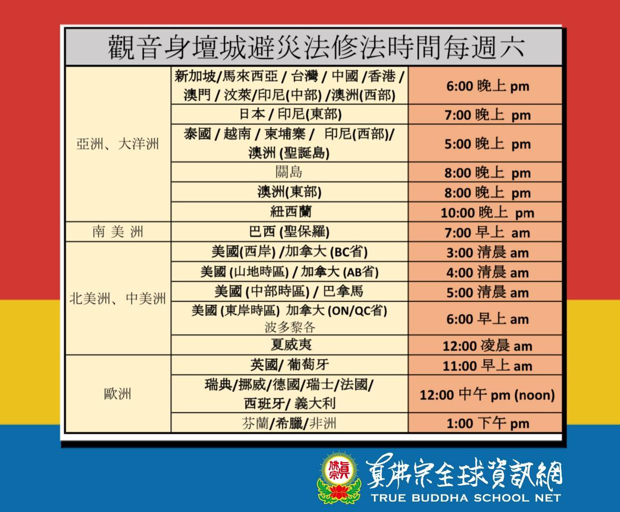 PS 各國同修時間對照表(附圖)。