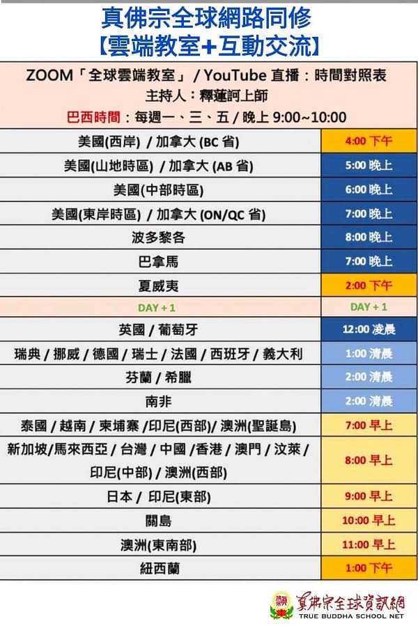 歡迎大家相約進入ZOOM「全球雲端教室」,或請點擊YouTube「真佛宗全球網路同修」平台觀看現場直播!