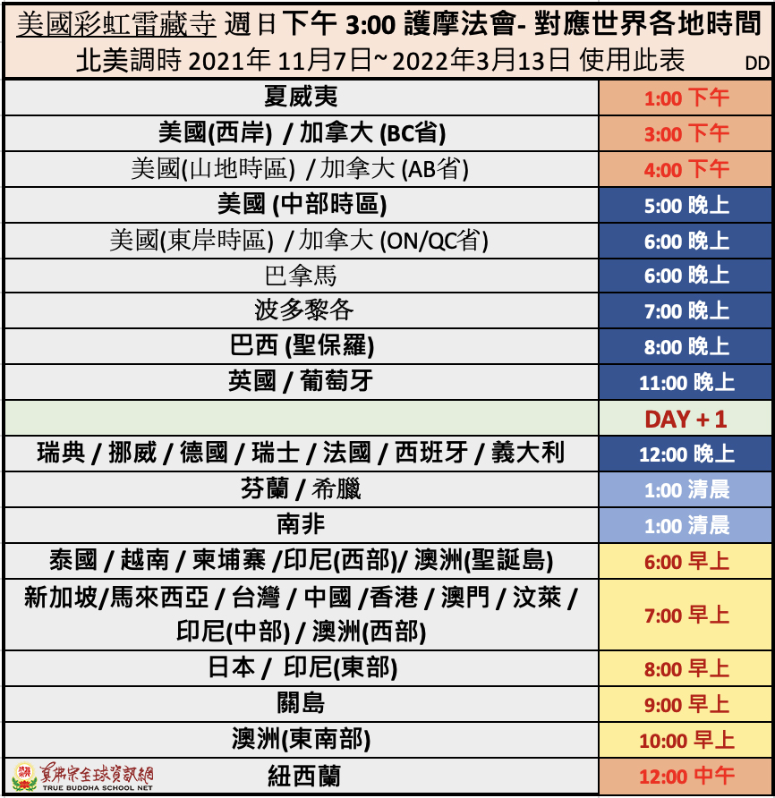 【與佛並進 同修和護摩法會各國時間表對照】更新