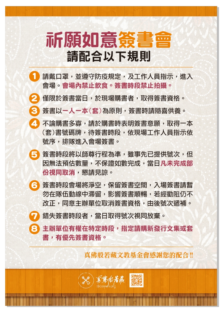 欲前往參觀及簽書的讀者請留意下列簽書規則!