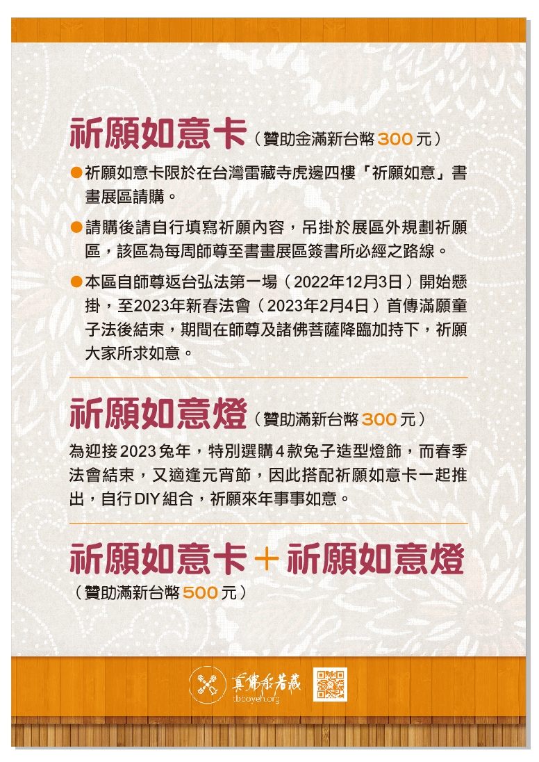 亮點4:配合蓮生活佛於2023年2月4日春季法會首傳「滿願童子」圓滿眾生願,特佈置祈願區,大家來找找在哪?大家共同祈求蓮生活佛為大眾賜福吧!