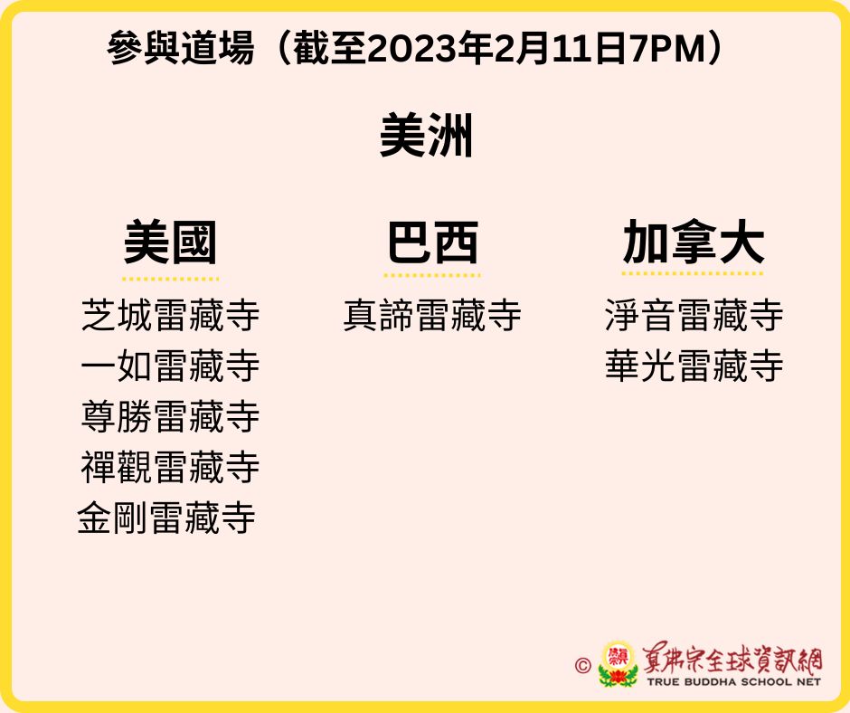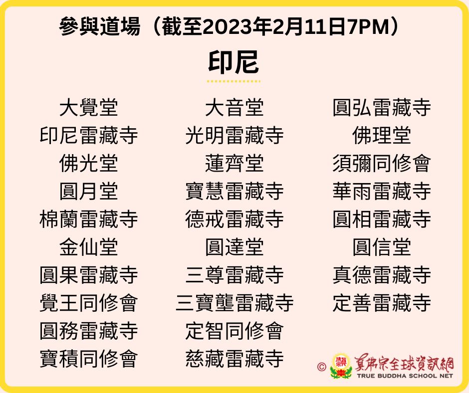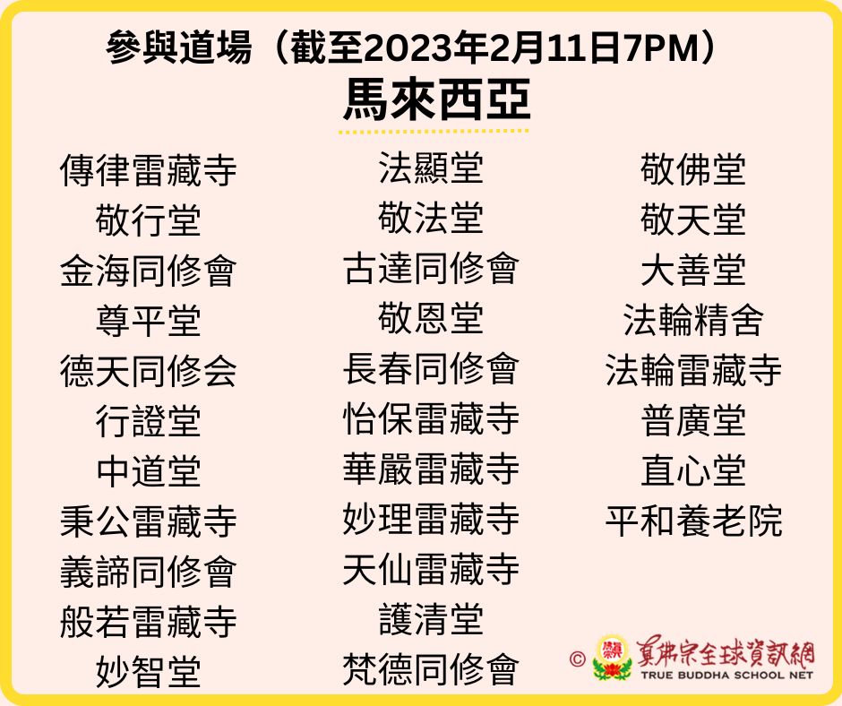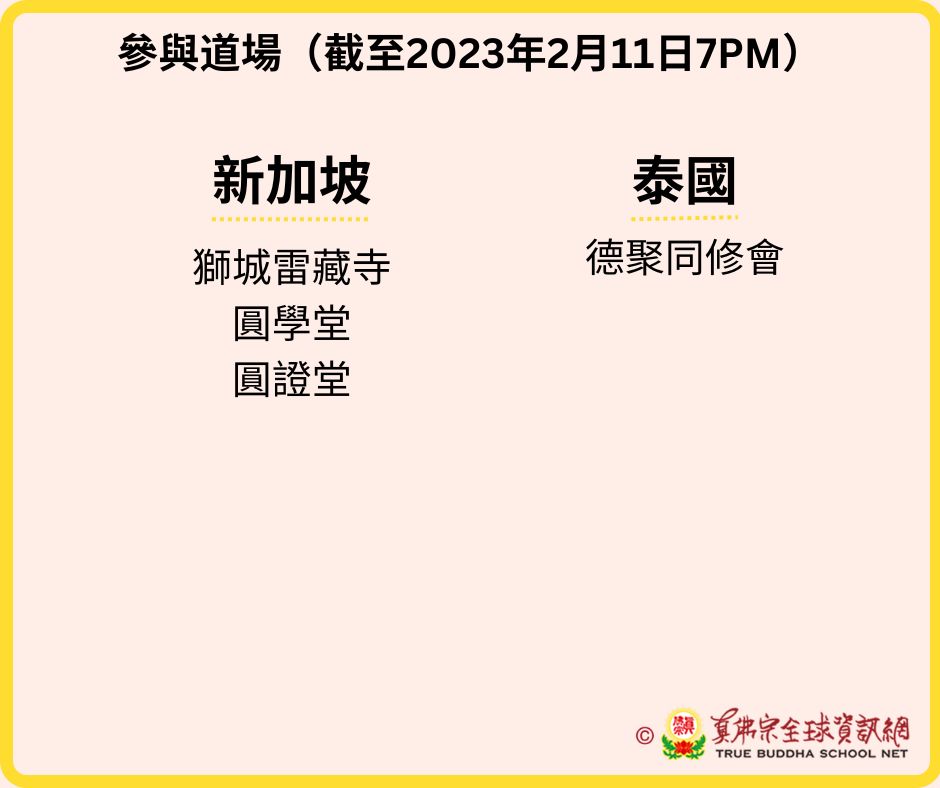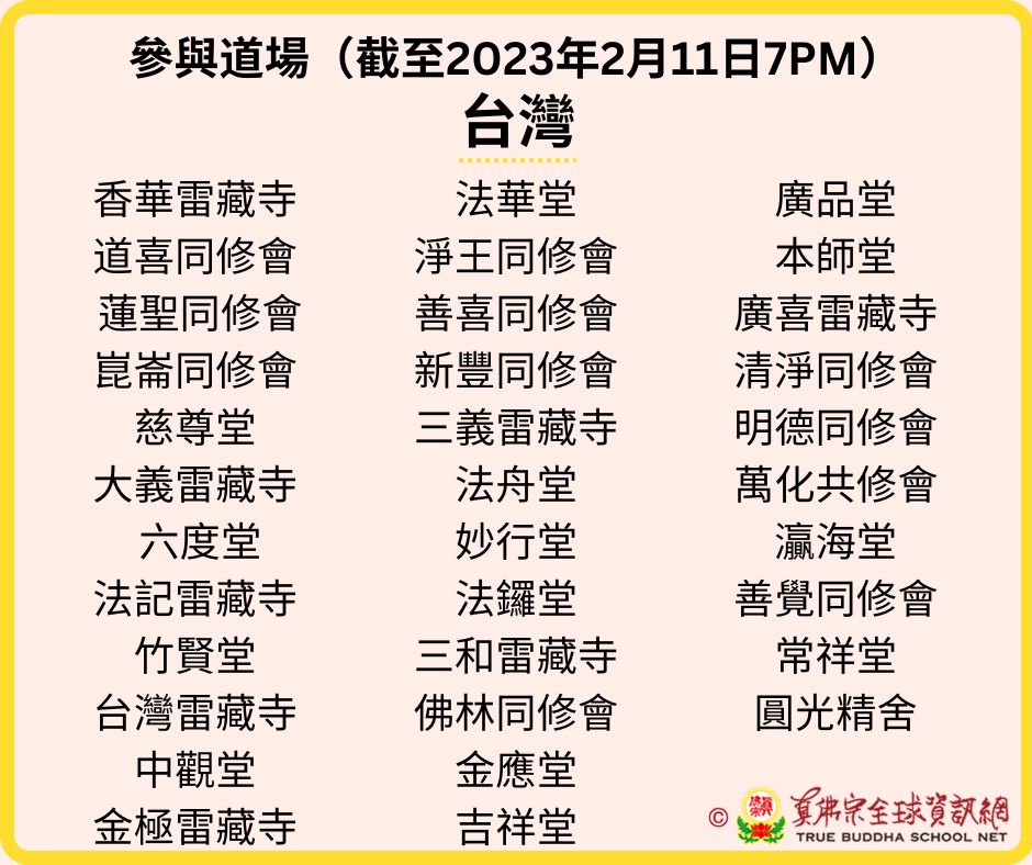 參與道場名單(更新至2023年2月11日 7:00PM)