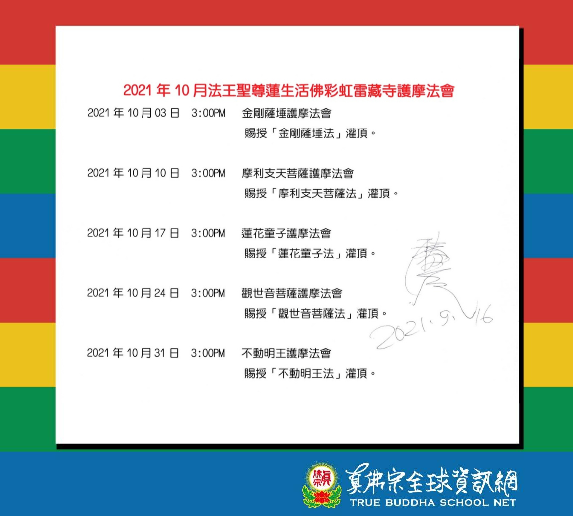 日期:2021/10/07 地點:彩虹雷藏寺 07:00(台灣時間)