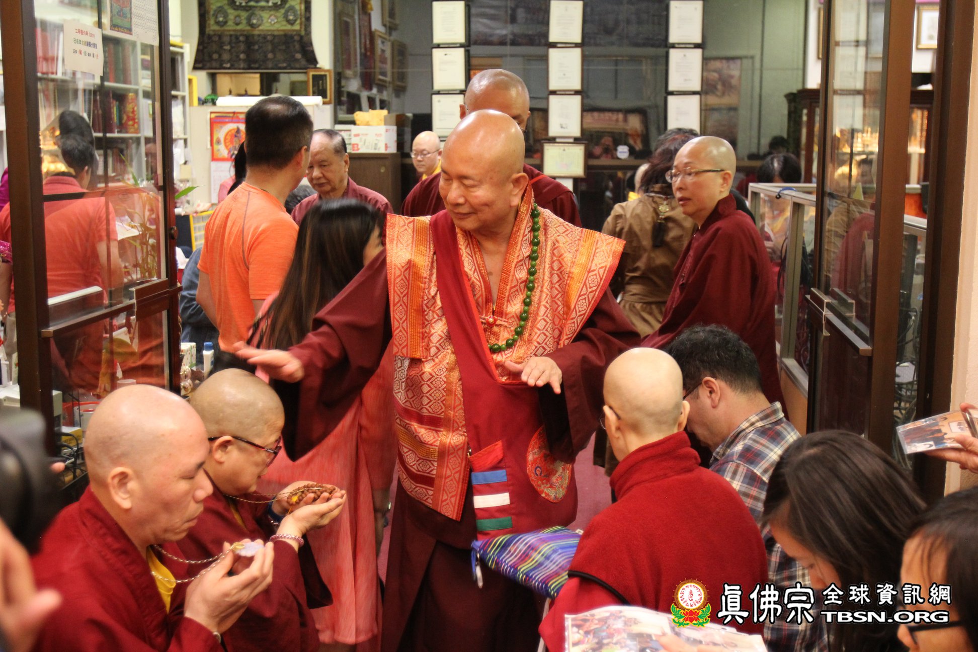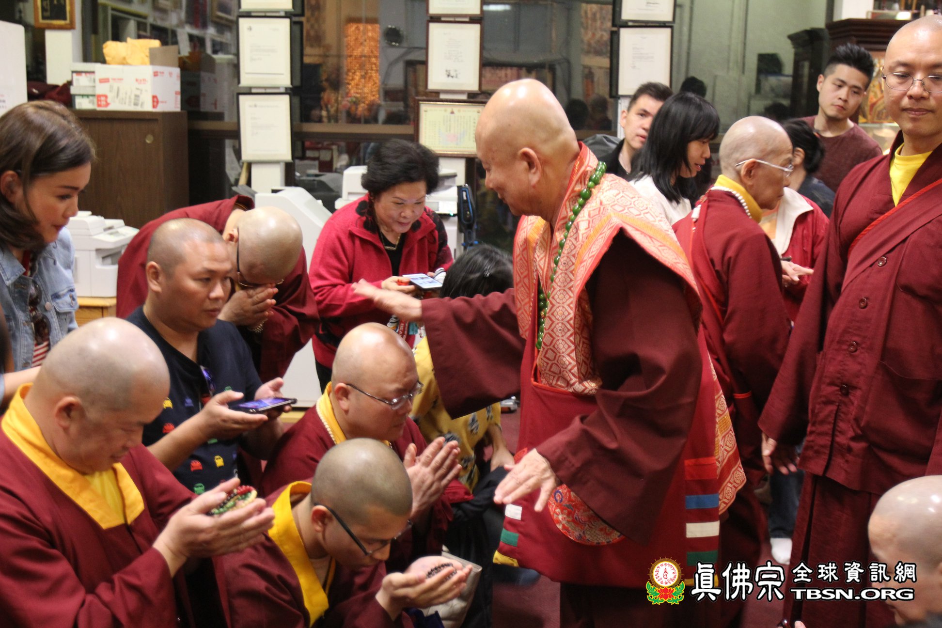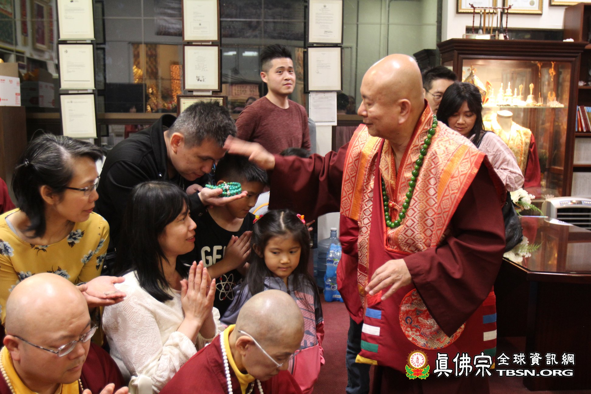 會後,聖尊為大眾賜授皈依灌頂、加持大悲咒水及佛像開光。離開雷藏寺前,聖尊還不辭辛勞為善信大眾摩頂加持。步出廟門,佛青闔家、佛奇闔家來到祖廟等候師尊、師母,現場勾勒出一幅天倫和樂的溫馨畫面,美麗的夜晚,瀰漫著溫馨的親情,為今晚劃上了最圓滿的句點。