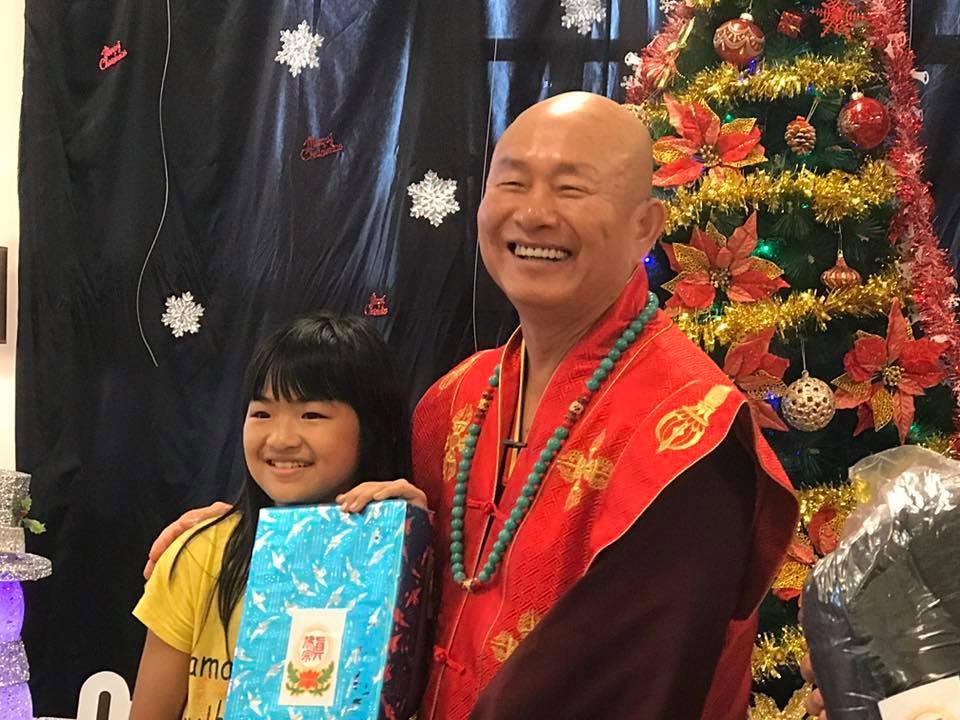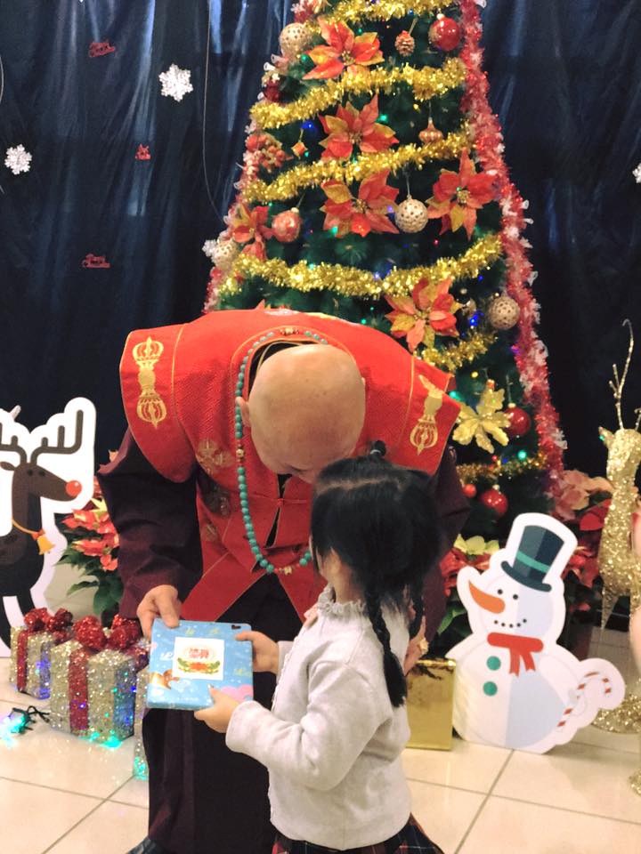 蓮生活佛長期熱心公益,關注弱勢團體,今天蓮生活佛特別發送給現場30位小朋友耶誕禮物,每個從蓮生活佛手上拿到禮物的小朋友們,個個開心不已。