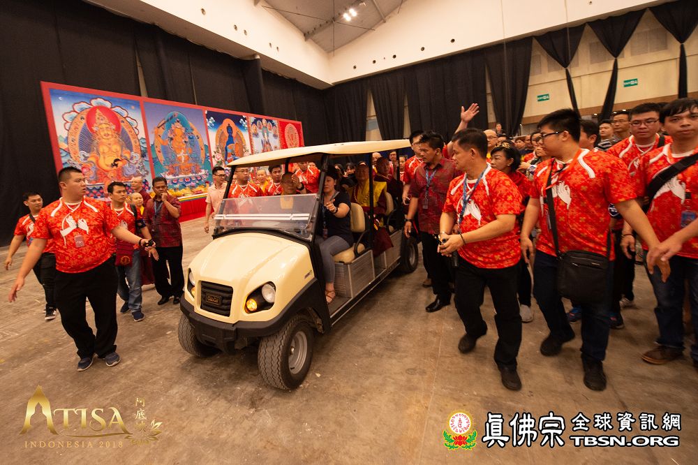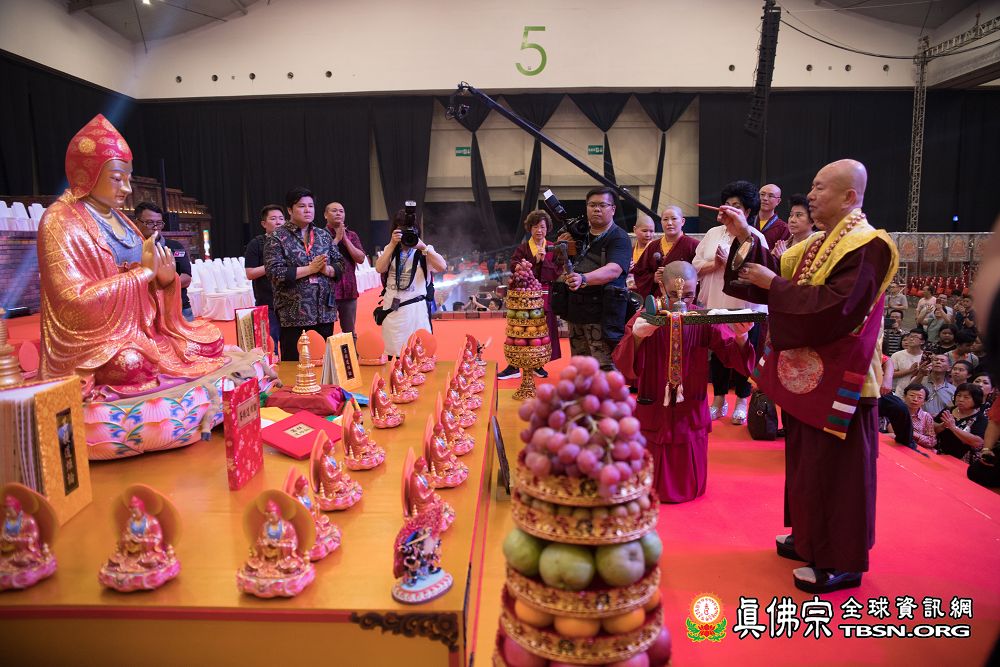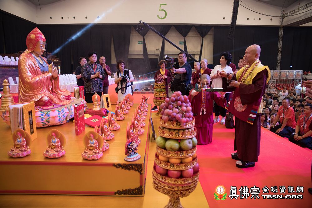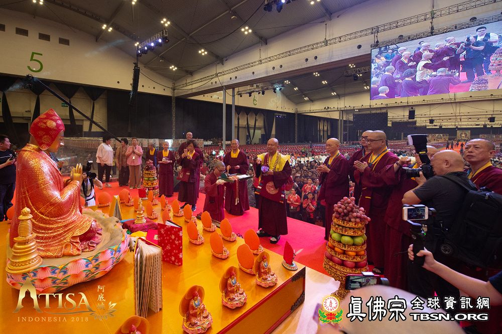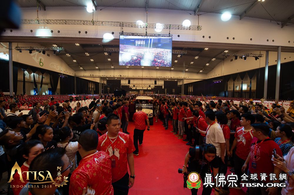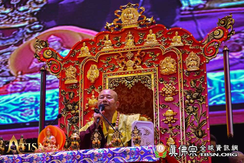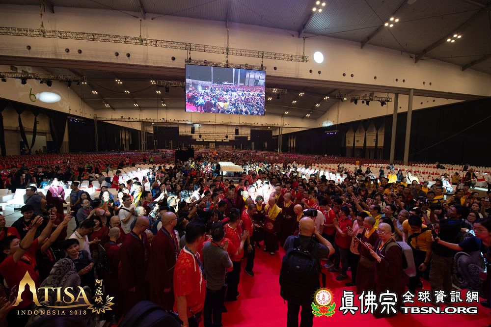 2018年12月7日晚上,蓮生法王蒞臨阿底峽尊者法會會場,為大法會壇城及殊勝無比的「真佛傳承噶當佛塔」開光,並加持義工們與會場群眾。