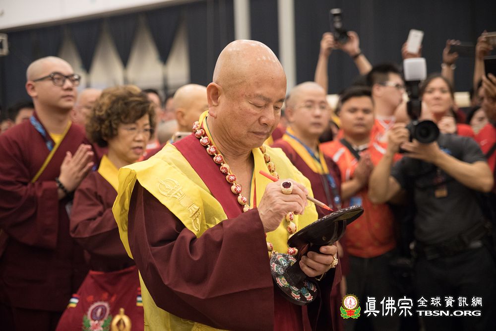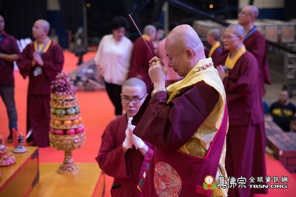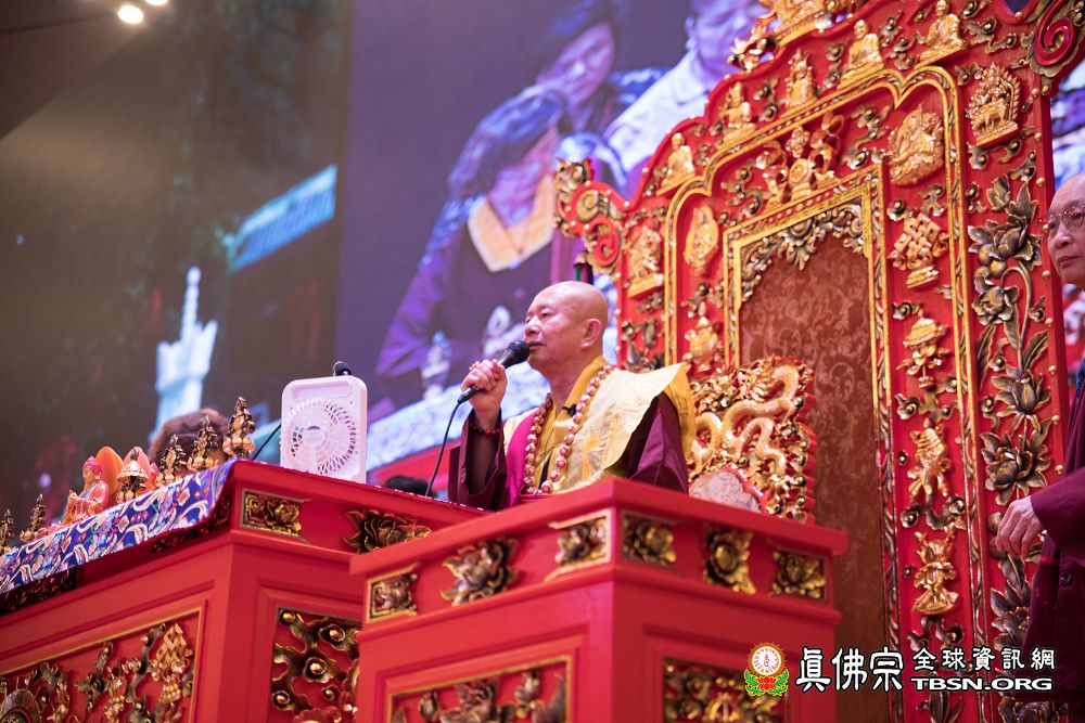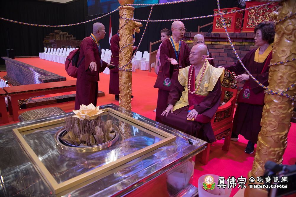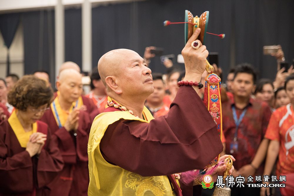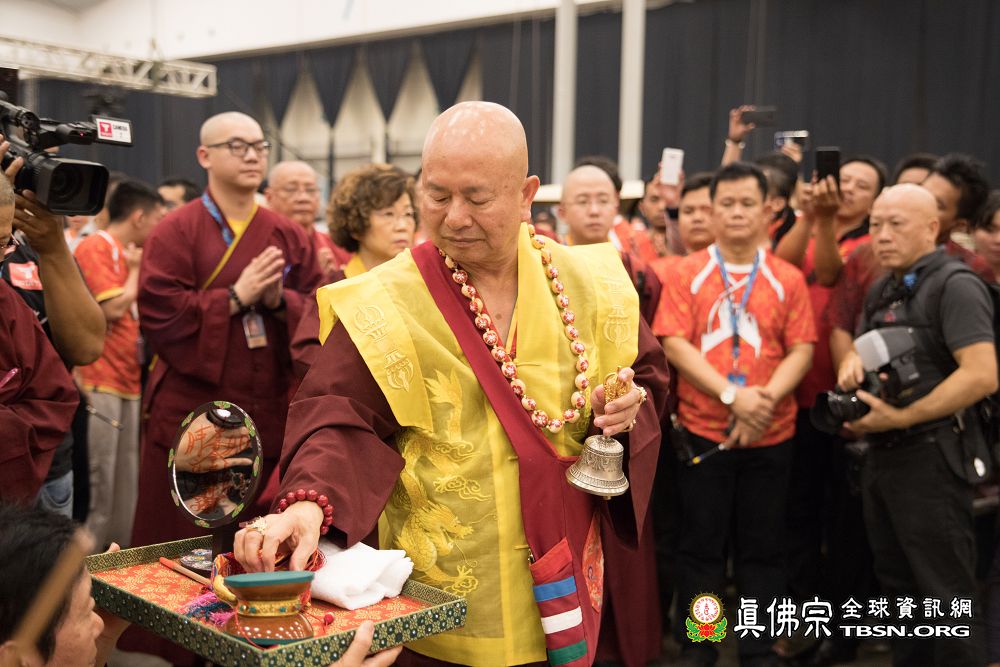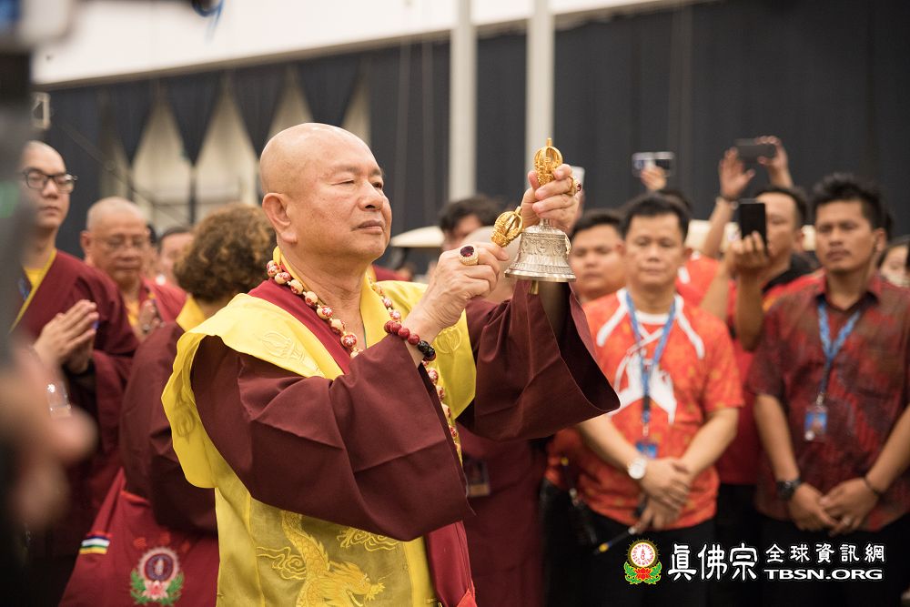 2018年12月7日晚上,蓮生法王蒞臨阿底峽尊者法會會場,為大法會壇城及殊勝無比的「真佛傳承噶當佛塔」開光,並加持義工們與會場群眾。