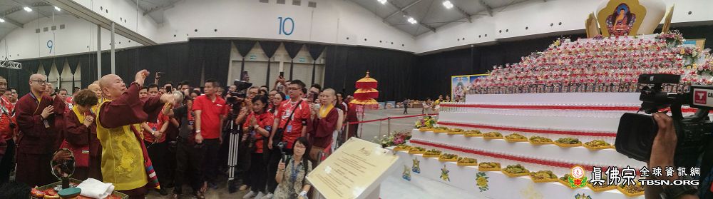 值得一提的是此「真佛傳承噶當佛塔」 有7米之高,7米之廣 ! 周圍有多層的「請佛住世大薈供」供品 ,法會後這充滿加持力的供品將被分發給所有參加感恩宴的同門結緣,讓大家帶著滿滿的祝福回家!