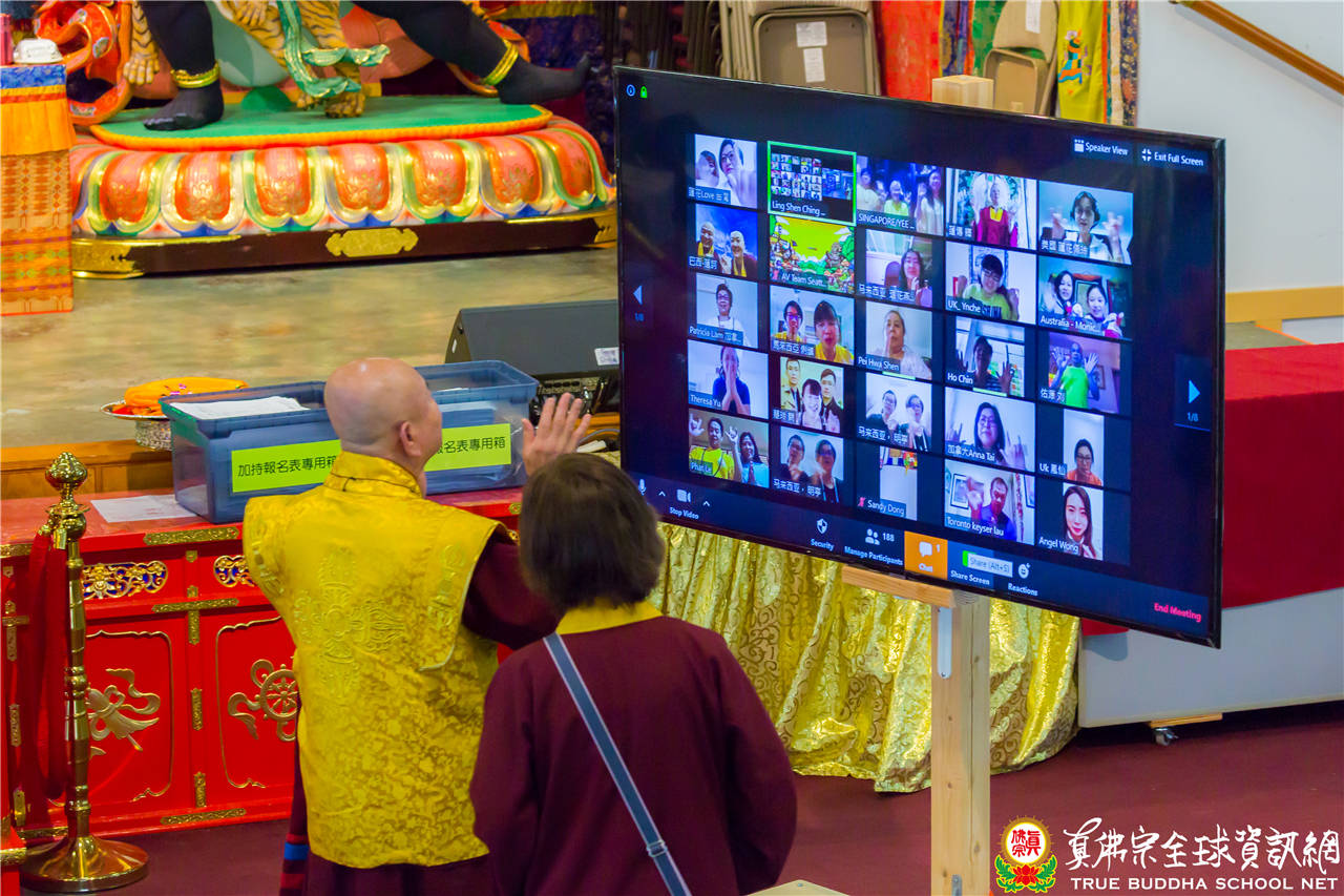 2020年5月17日下午,美國真佛宗西雅圖彩虹雷藏寺恭請根本上師蓮生活佛主壇除瘟疫度母護摩大法會。是日法會非常的殊勝,法王告訴大家,當祂比除瘟疫度母的手印時,每一尊的度母排成一條直線化為光點,降到祂的身上,「包括了綠度母、白度母、二十一度母、除瘟疫度母,包括了四守方母、八方空行母、二十天的空行母,全部都到,這是非常殊勝的法會!」