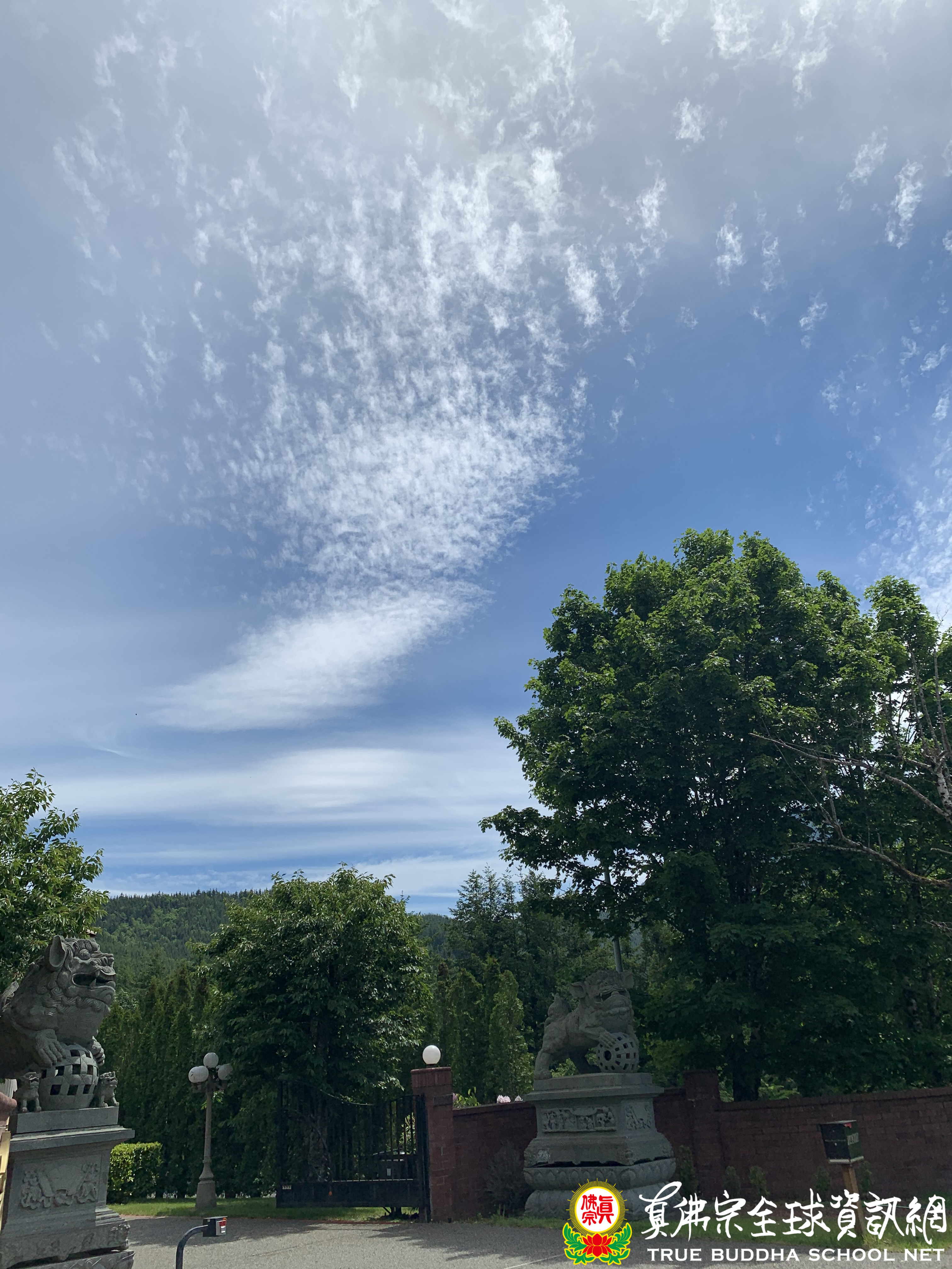 法會結束後,祥瑞的的慶雲連綿不斷地出現在半邊的天空,雲朵有如海會諸佛菩薩的蓮花法座,聚集如此光輝燦爛,種種禎祥之兆,似乎是在鼓勵大家,曙光將至,局勢會好轉。靜謐的山莊,自然佳景風光,獨立於世間之外。遠處隱約傳來那首熟悉的歌曲「我的家鄉在日喀則」,只不過內容是在歌頌蓮生活佛盧師尊建立的彩虹雷藏寺道場,是西方的世外桃源香格里拉。此處誠然是佛菩薩受記的寶地,引導出離塵世喧囂的行者,以淨信依止根本上師的教言,證悟自心祕密。