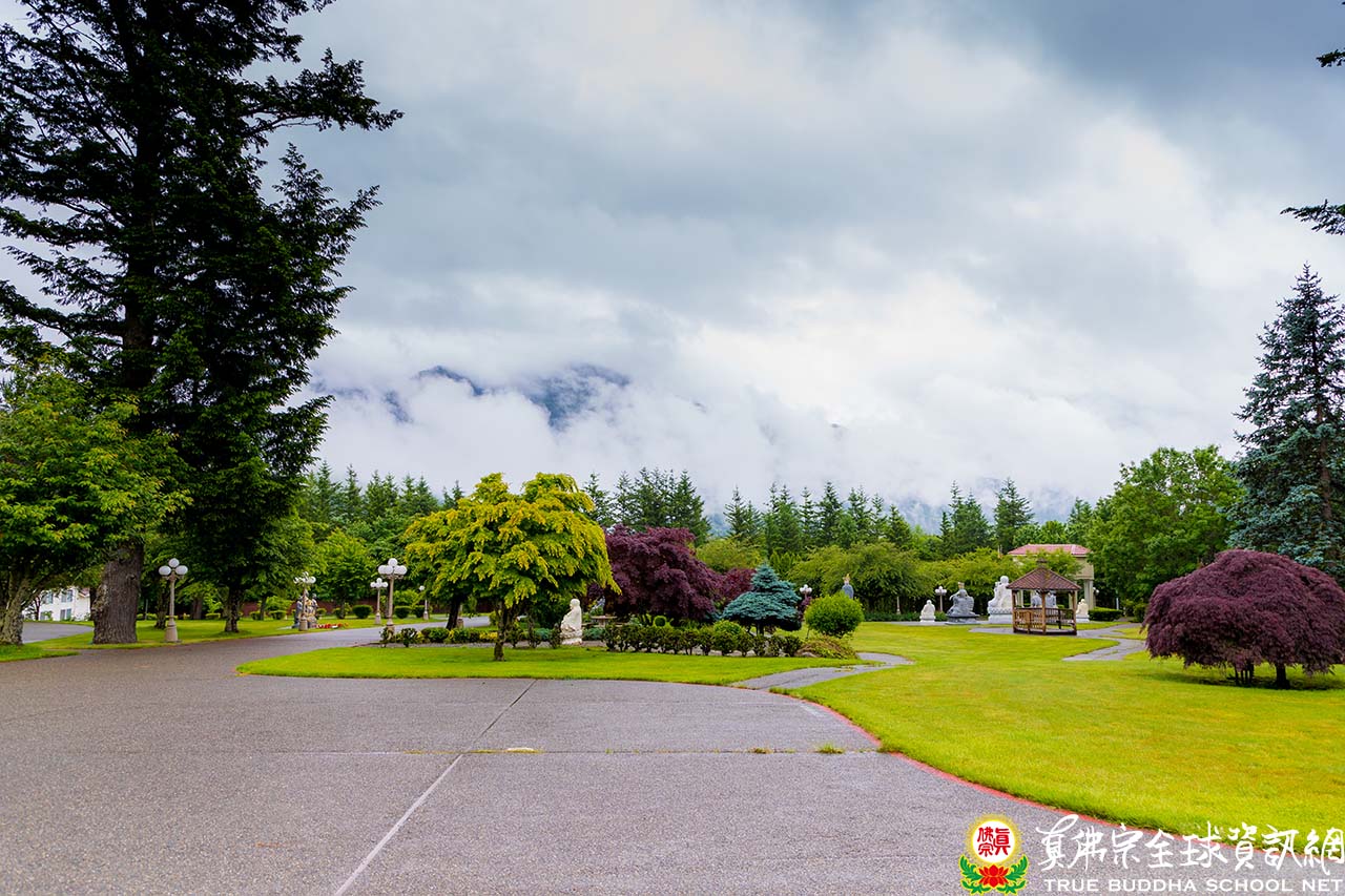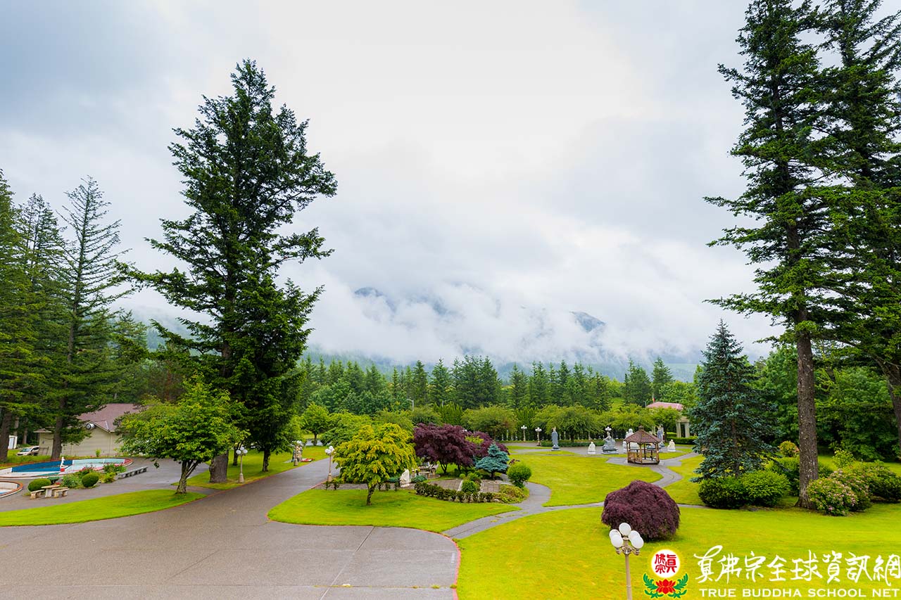 午餐時,忽地一聲「哇!」,眾人眼光原本不經意地從餐室窗外望出,皆被對面白茫茫雲霧繚繞的山景,驚豔的目瞪口呆!飄緲的雲霧,升騰縈繞於翠綠的層層山巒中,時隱時現,大家的心也跟著起伏在虛無飄渺間,宛若置身在仙境的畫中。師尊笑問,是否有人爬過對面那座山,一起到山裡尋找神仙,若是有殿堂樓閣隱藏在雲霧裊裊之中,上面寫著「洞天勝境」,一定是來到上界仙家的住所。白雲籠罩著整座山,像一條哈達圍繞,宛如鋪上“白地毯”接引海會佛菩薩空行諸天下凡塵,應邀來參加蓮生活佛的盛大法會,迷人的景色,成為疫期間的小確幸。