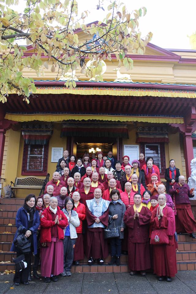 【西雅圖釋蓮旺訊】根本上師蓮生活佛盧勝彥,在11月1日上午帶領著座下上師、教授師、法師、講師、助教、同門們,前往西雅圖薩迦寺,瞻禮已圓寂的薩迦派達青法王。