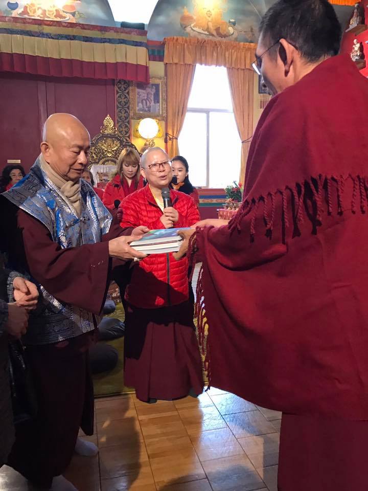 Tulku Yeshi仁波切代表薩迦寺致歡迎詞,他表示對於蓮生活佛前來薩迦寺瞻禮達青法王,感到很榮幸,達青法王是第一位來美國傳授藏傳密法的人。並說,他知道蓮生活佛曾經得到薩迦寺上師傳授密法。
