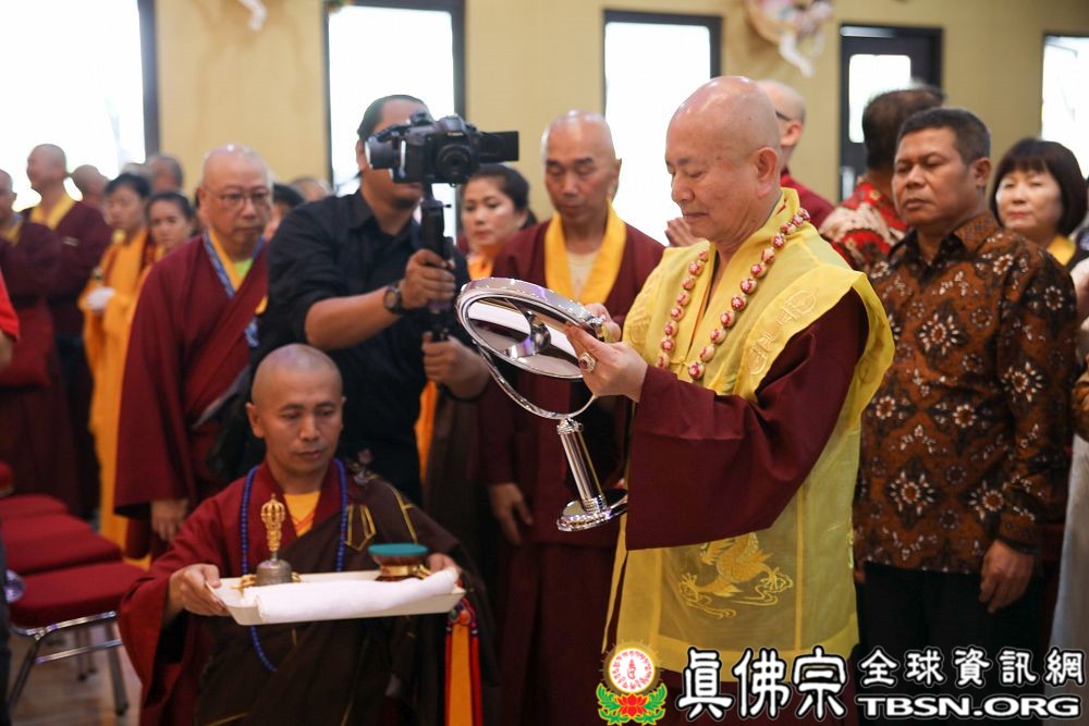 他感恩今天大家能夠相聚在此,非常感謝大家,特別感恩師尊。今天是非常具有歷史性的一刻,因為是西雅加達第一座雷藏寺開光。他感謝大家護持,請佛住世,永轉法輪。