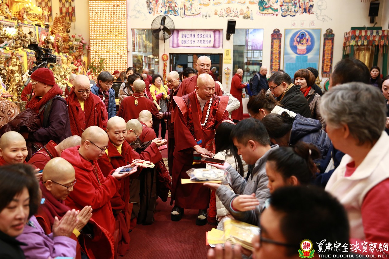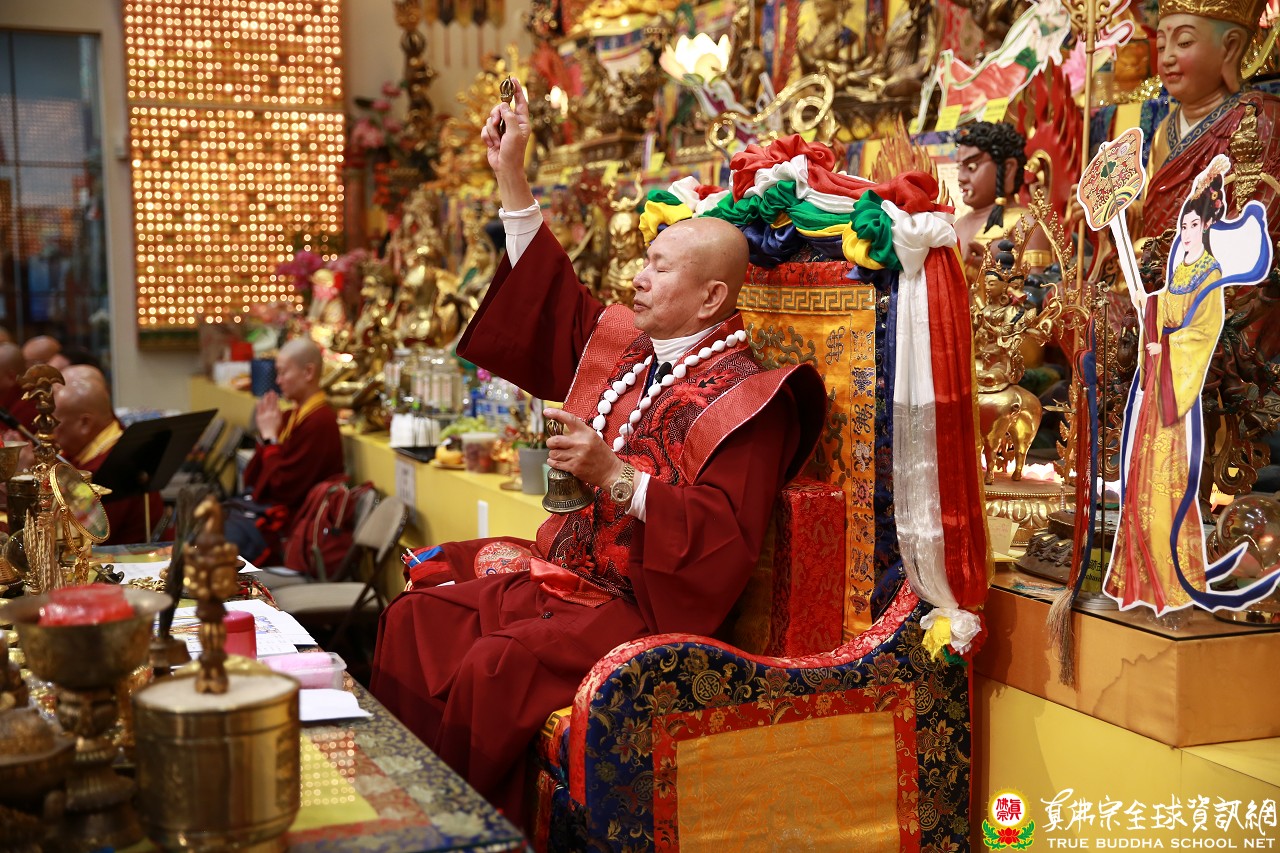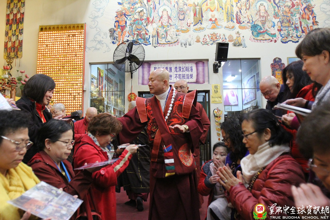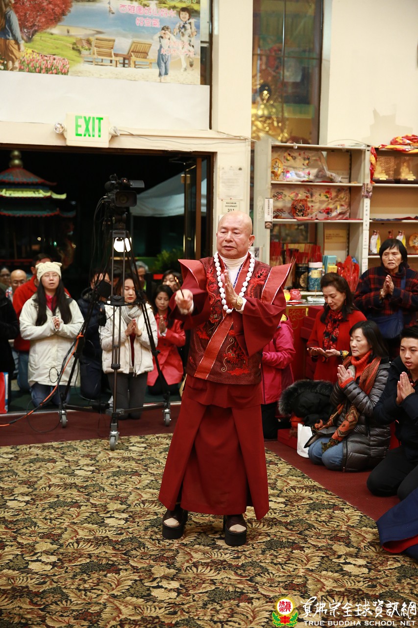 天氣雖然非常寒冷,但弟子們護持聖尊、虔心求法的熱情不減,許多同門仍從世界各地遠來祖廟朝聖。今晚西雅圖雷藏寺的同修主尊是阿彌陀佛。在同修開始前,首先舉行了西雅圖雷藏寺第三十五屆法師研習班結業儀式,本次法師研習班的學員是蓮誰法師、蓮璃法師、蓮唔法師、蓮梁法師、蓮闐法師、蓮卿法師、蓮褐法師、蓮遠法師、蓮唯法師,共九位出家法師,由聖尊頒發結業證書,並且與聖尊合影留念。在眾人的見證之下,隆重的結業儀式禮成,恭喜每一位完成法師研習班的學員,將來都能秉持聖尊的教導,自利利他、自度度他。