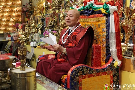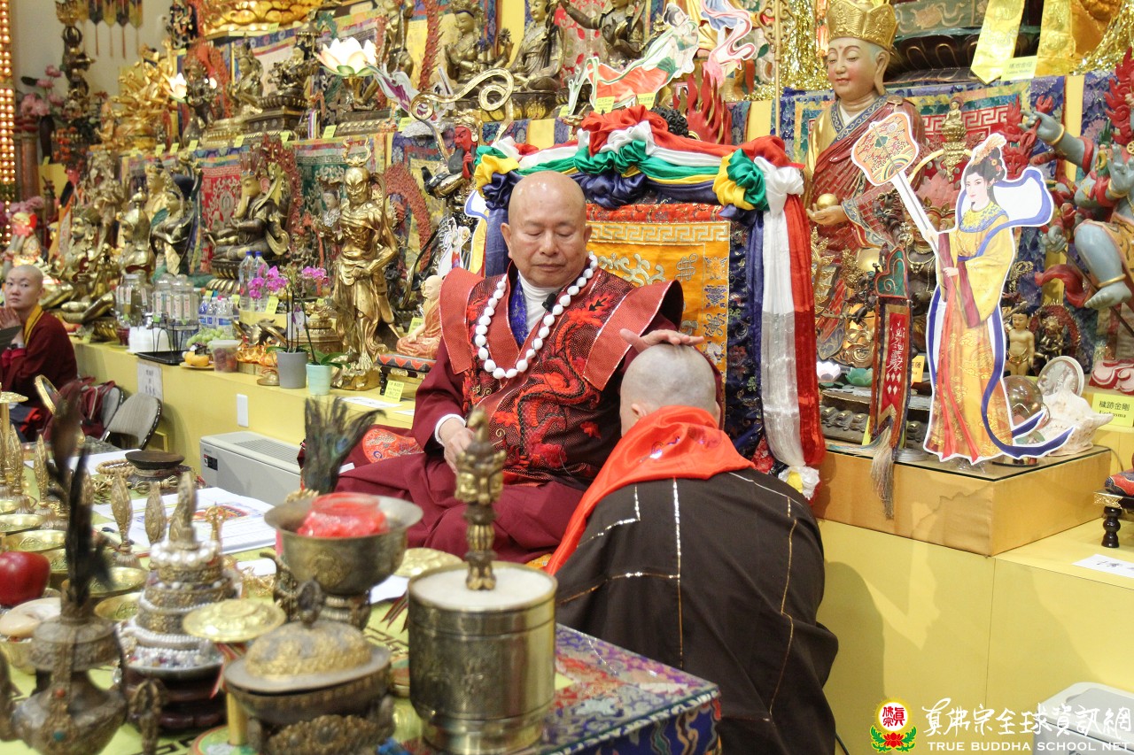 會後,聖尊為大眾賜授受皈依灌頂、加持大悲咒水及開光佛像。離廟前,聖尊為與會善信一一摩頂加持滿願。聖尊圓滿通達密法,完完全全了然於心,所以能精確闡釋深奧的道果法義,深入淺出的教導弟子們。一心禮敬根本傳承上師。