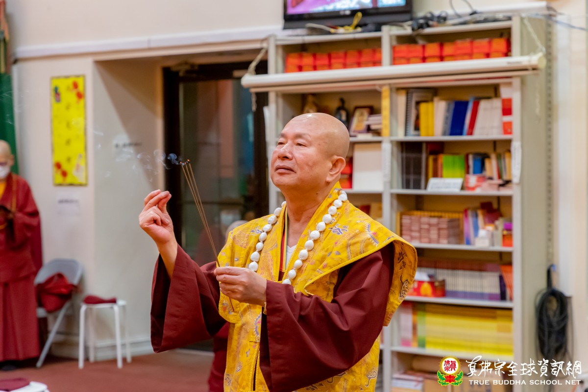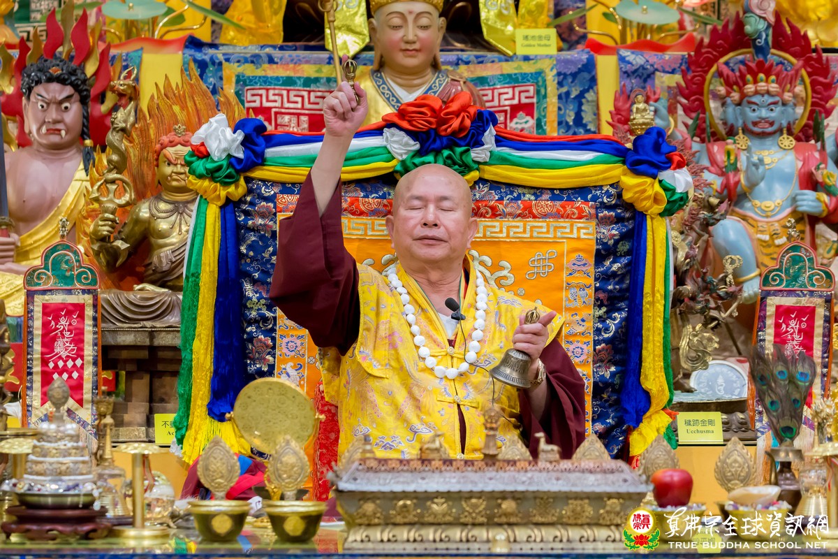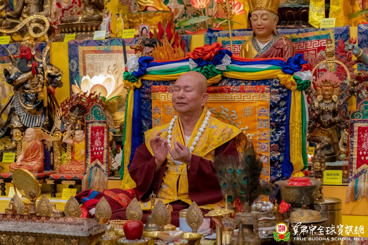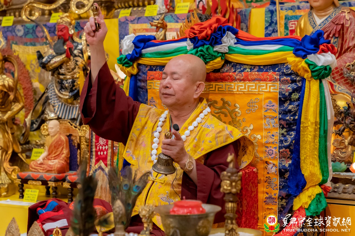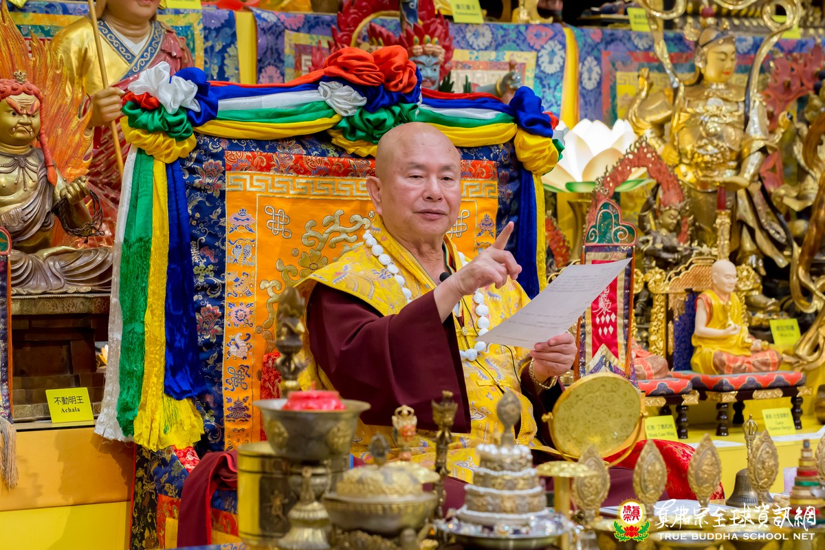 由蓮靈法師代表敬獻哈達以表最高敬意。師尊先敬禮了鳴和尚、敬禮薩迦證空上師、敬禮十六世大寶法王卡瑪巴,敬禮吐登達爾吉上師。再敬禮壇城三寶。敬禮同修主尊大準提佛母。師尊再用各國語言一一問侯大家。也先講了有關父親節的笑話,祝大家父親節快樂。