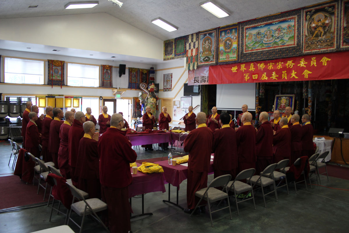 【西雅圖訊/蓮育報導】2016年8月30日是西雅圖秋季大法會過後第三天上午十點,真佛宗第四屆宗委會於彩虹雷藏寺召開第八次委員會議,由蓮寧上師及宗委會七位處長蓮印上師、蓮栽上師、蓮旺上師、蓮者上師、蓮訶上師、蓮潔上師、蓮悅上師,及委員蓮花常仁上師、蓮花常智上師、蓮花德輝上師、蓮主上師、蓮聲上師、丶蓮今上師、蓮太上師、蓮萊上師、蓮哲上師、蓮店上師出席參加,有四位委員缺席,另有19位上師共同列席參加會議,共同討論宗派法務。