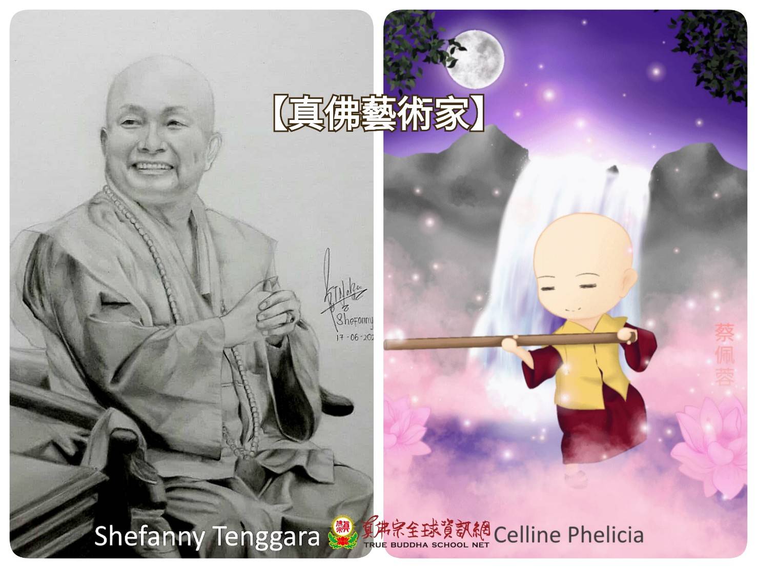 接下來《真佛藝術家》影片發表參賽者所畫的心中的師尊,有些作品成熟優秀、有些作品充滿了童稚的純真無邪,都非常的用心!而《懷舊歲月》影片展示了師尊往年與上師、法師、同門的吉光片羽,美好的歲月,令人莞爾。另外也有李琪師姐呈獻的與師尊的合照集影片。