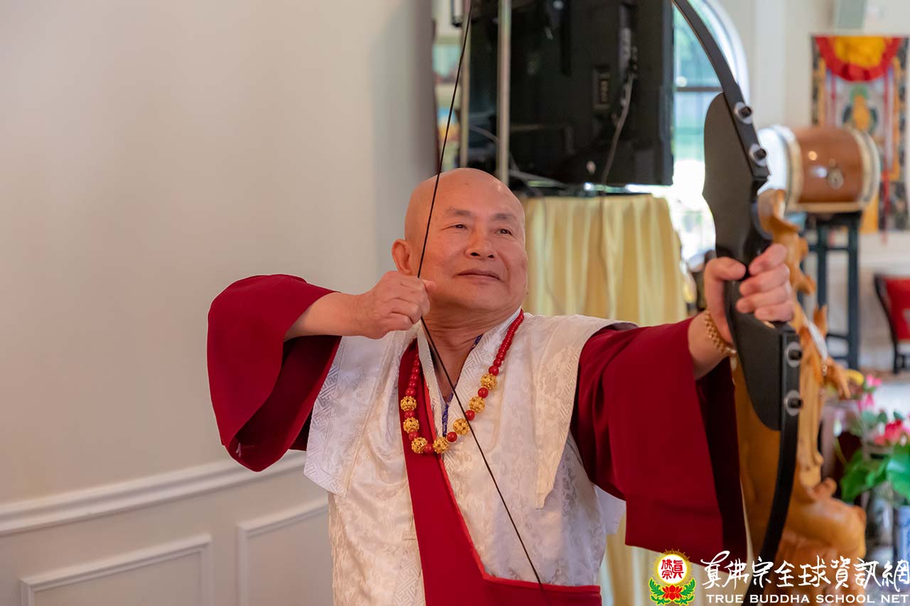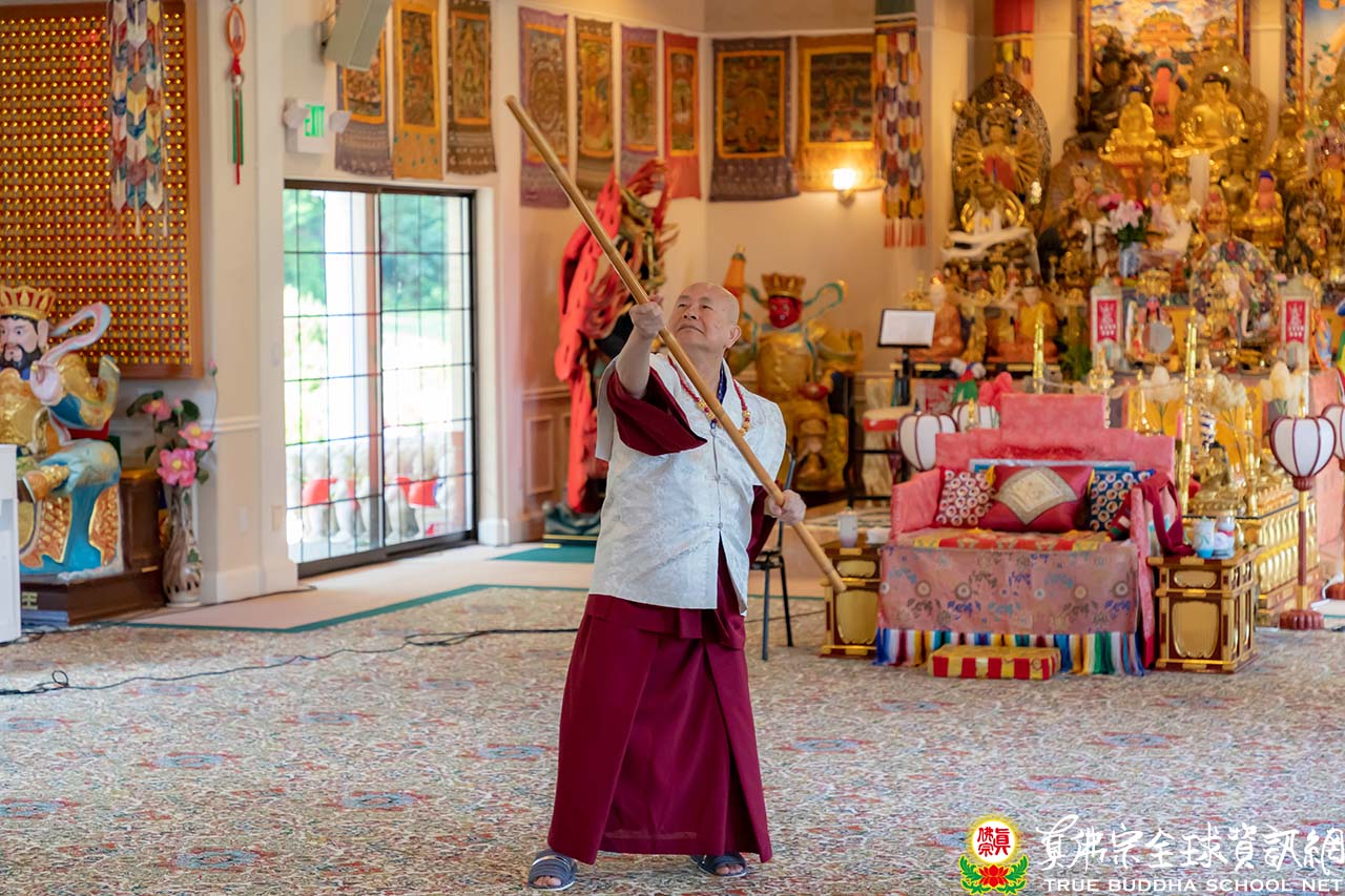 下午三時,護摩法會開始,原本陰晴不定的天氣,在師尊步出大殿門口的那一刻,霎時大日光芒遍照,金色的陽光照在師尊行經的道上,迎師的傘蓋被乍現的大日光芒照耀而閃爍著黃金般的顏色。伴隨著有如從天而降的萬道佛光,師尊莊嚴的步入護摩寶殿主壇今日的蓮花童子護摩法會。在熊熊的護摩火中,師尊召請護摩主尊降臨壇場,慈悲演化手印,無論是息災、敬愛、增益、超渡皆得根本上師及主尊加持圓滿。師尊妙語如珠的佛法開示,以深入淺出的方式,能讓更多的人更容易領受佛法的精妙奧義。