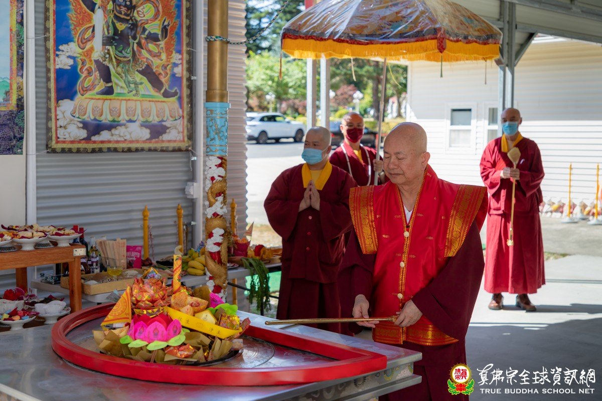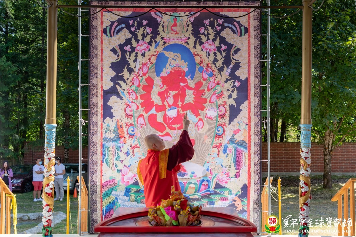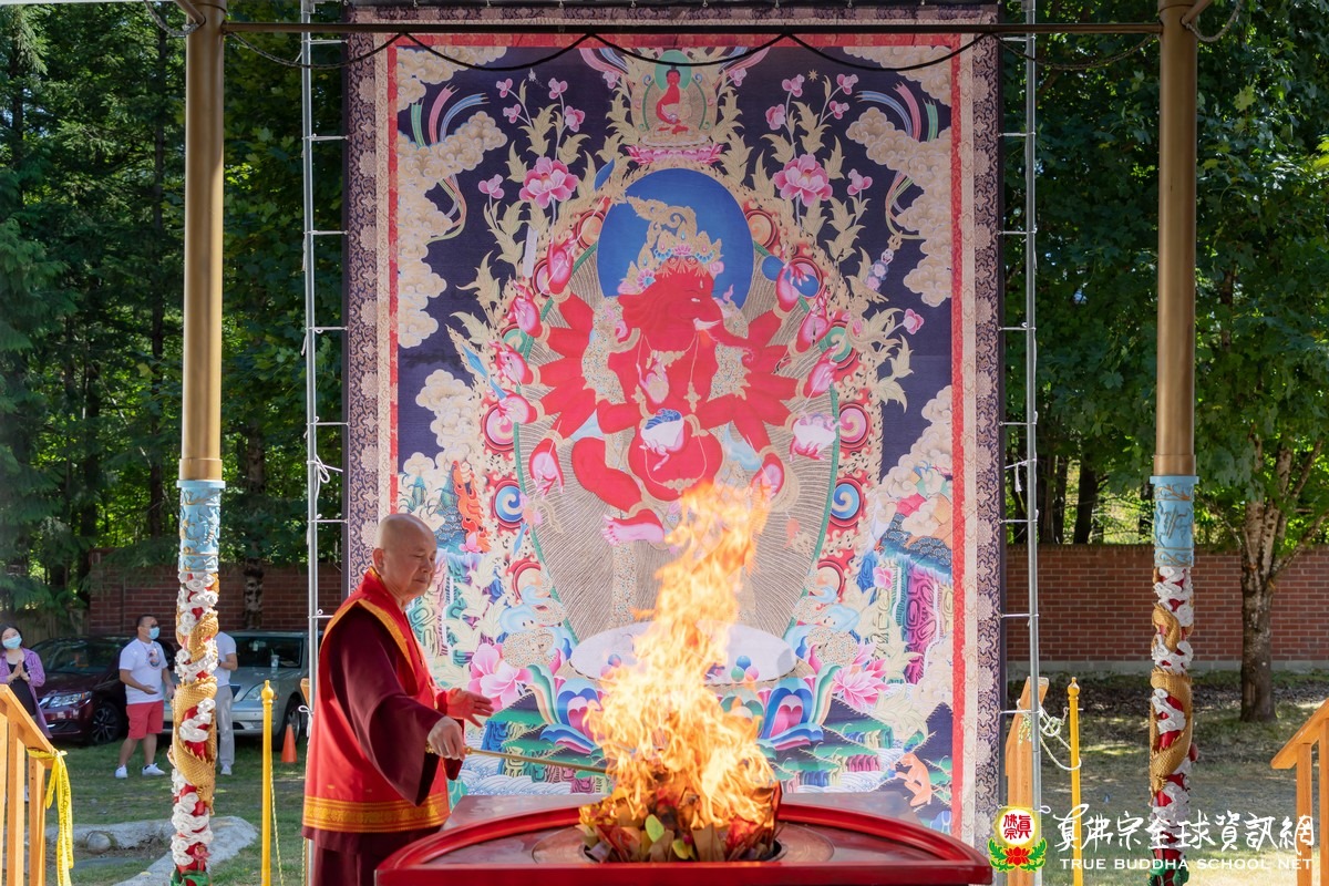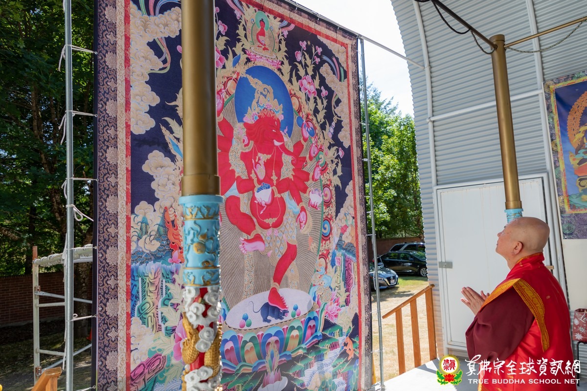 2020年8月2日下午,美國真佛宗西雅圖彩虹雷藏寺恭請根本上師蓮生活佛主壇紅財神護摩大法會。紅財神(Ganesh)在藏傳佛教中又稱象鼻財神,是很有名的財神資糧主,除此之外,象鼻財神在印度亦主掌去除教育或任何學習路上的所有障礙,家家戶戶凡有正在學習中的孩子,家中一定恭奉象鼻財神,每逢象鼻財神的聖誕大喜日,全國歡慶,孩子們更是不能忘記向象鼻財神頂禮。傳說印度三大方言之一的Tamil(泰米爾)正是象鼻財神以天語之音所傳,是全世界最好聽、最順耳的語言。紅蘿蔔、白蘿蔔是紅財神最喜歡的食物,「祂是最大的財神,叫做資糧主」,所以,蘿蔔葉就是數眾生的財,「每一個很小的葉子都是一個財庫,你有多少財庫就給你多少,給你幾片葉子,你就有多少錢,幾個財庫,你只要吃下幾片葉子,你就有多少財庫。」法王教導修持紅財神的口訣,「祈求祂降臨的時候,你的兩個尾指就是象鼻,要動一動,互相摩擦,表示觸動紅財神的心,祂的鼻子就會吐財寶從天上下來」,最主要的是能請得到祂來,祂的重點在祂的鼻子,「最重要的口訣,你要結忿怒金剛杵印。」