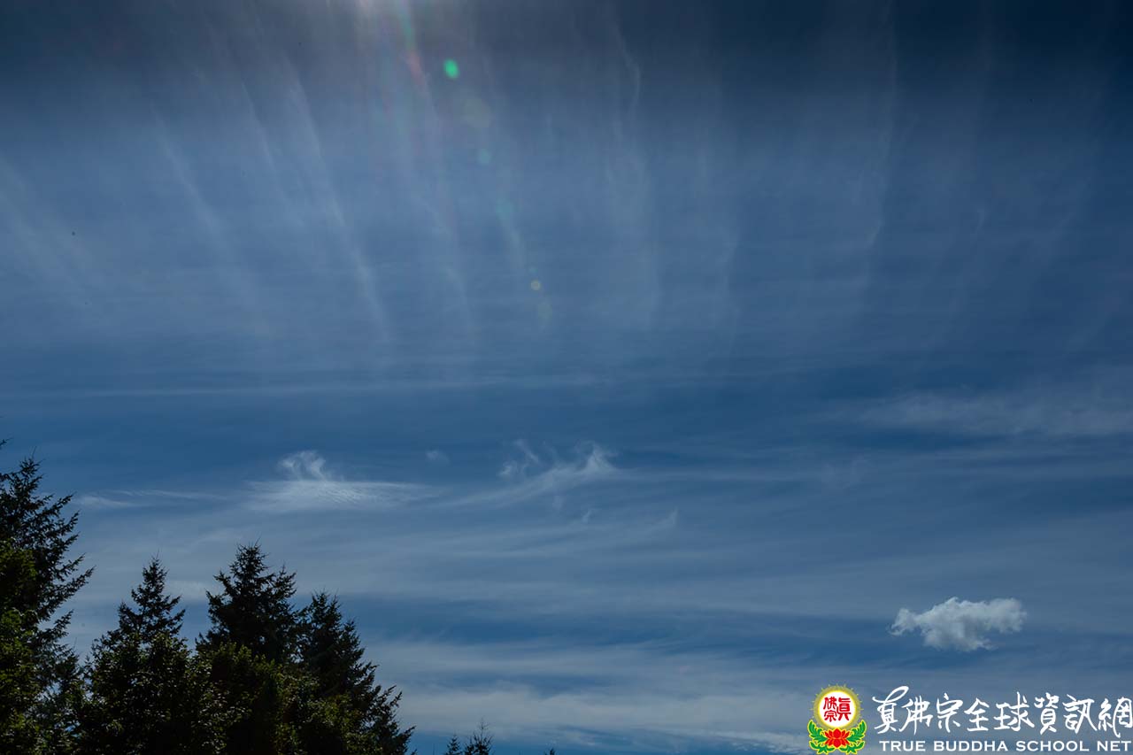 在回程前,師尊師母站在寺門外的台階上,對著圍繞的遠山近山,給大眾講解彩虹雷藏寺的大地理;洛磯山脈千里來龍綿延至此,並一一指出包圍這塊寶地的七星: 旗山、鼓山、天馬山、印山、紗帽山、屏風山、貴人峰的位置,大家聽了不但增長需多風水知識,更加珍惜彩虹雷藏寺這塊天然的寶地。