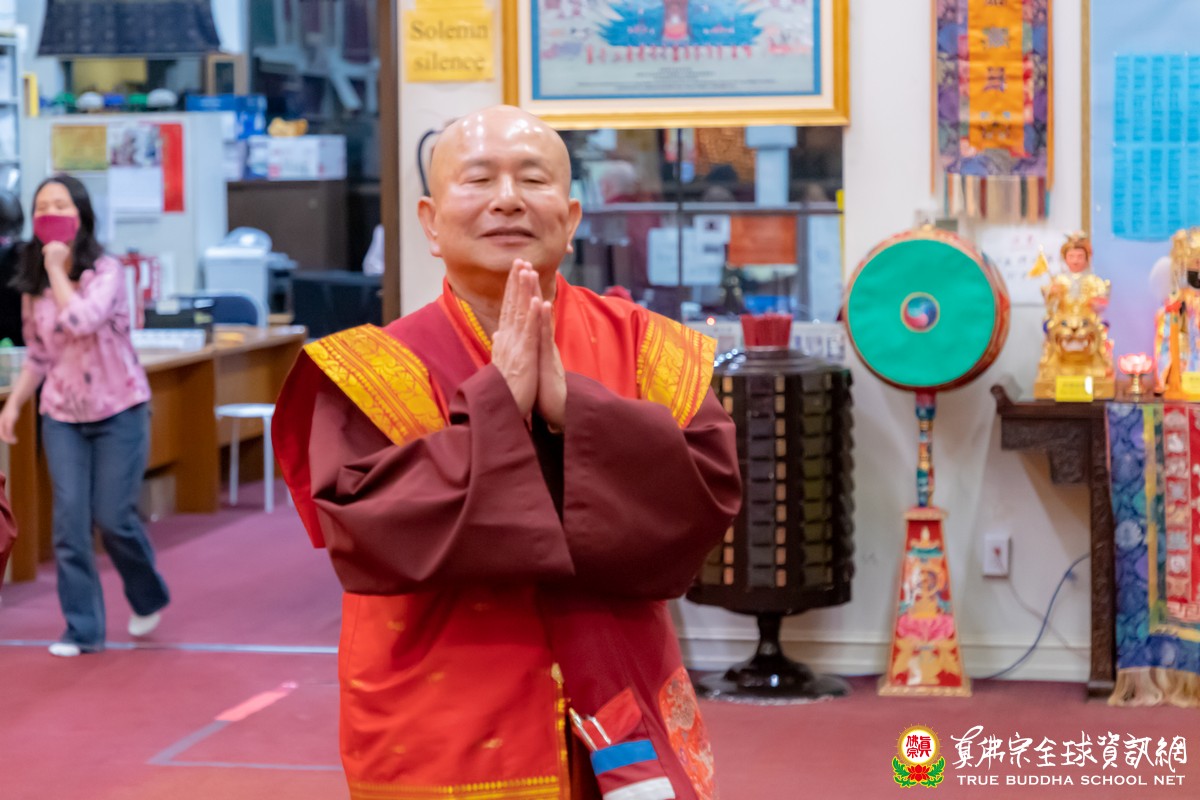 漸漸進入秋天的西雅圖,夕陽西下的早,同修前的天色已逐漸變暗,更顯得祖廟大雄寶殿通明的燈火在夜裡光耀著。聖尊與師母神情愉悅的來到了祖廟,主壇今晚蓮華生大士本尊法的同修。