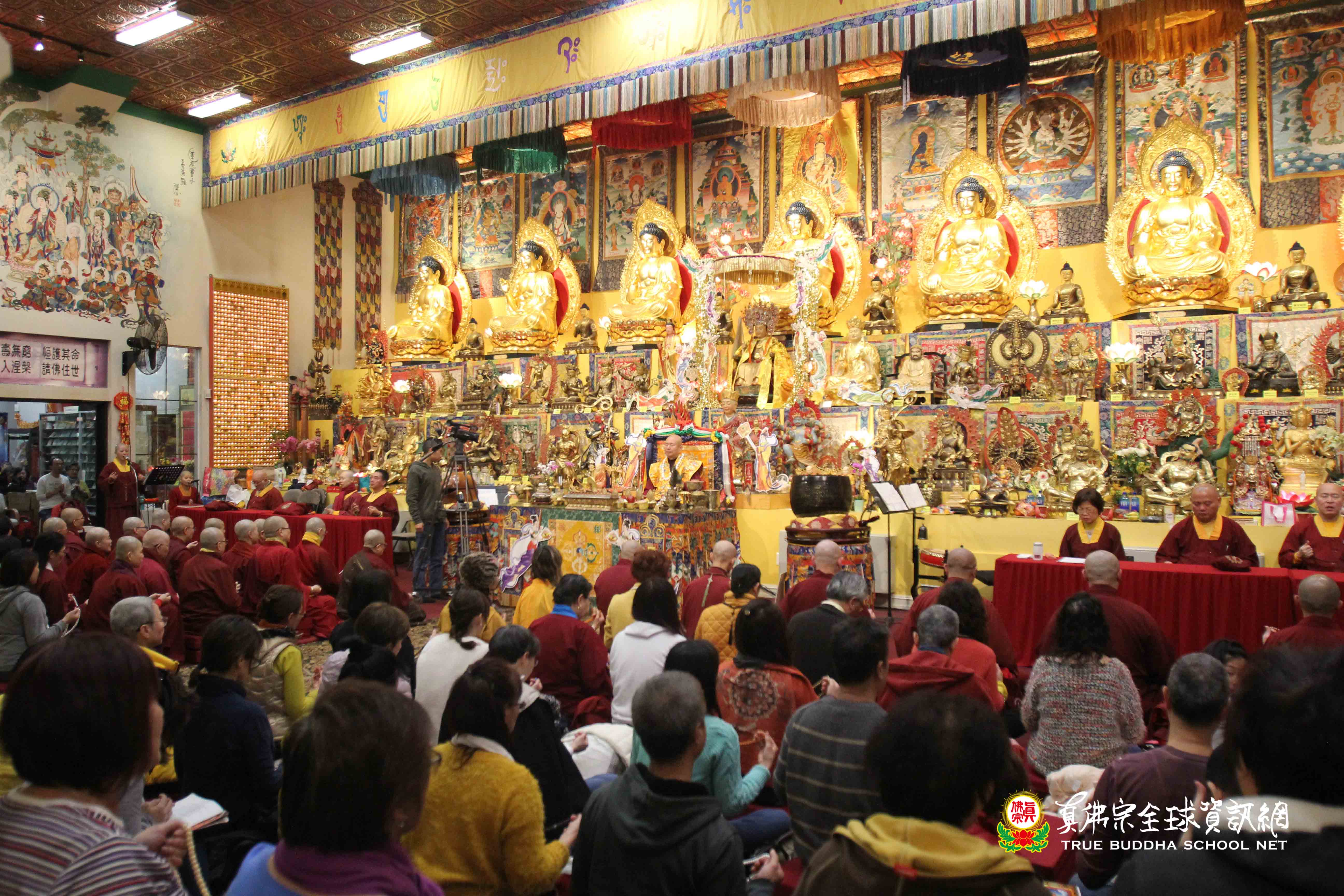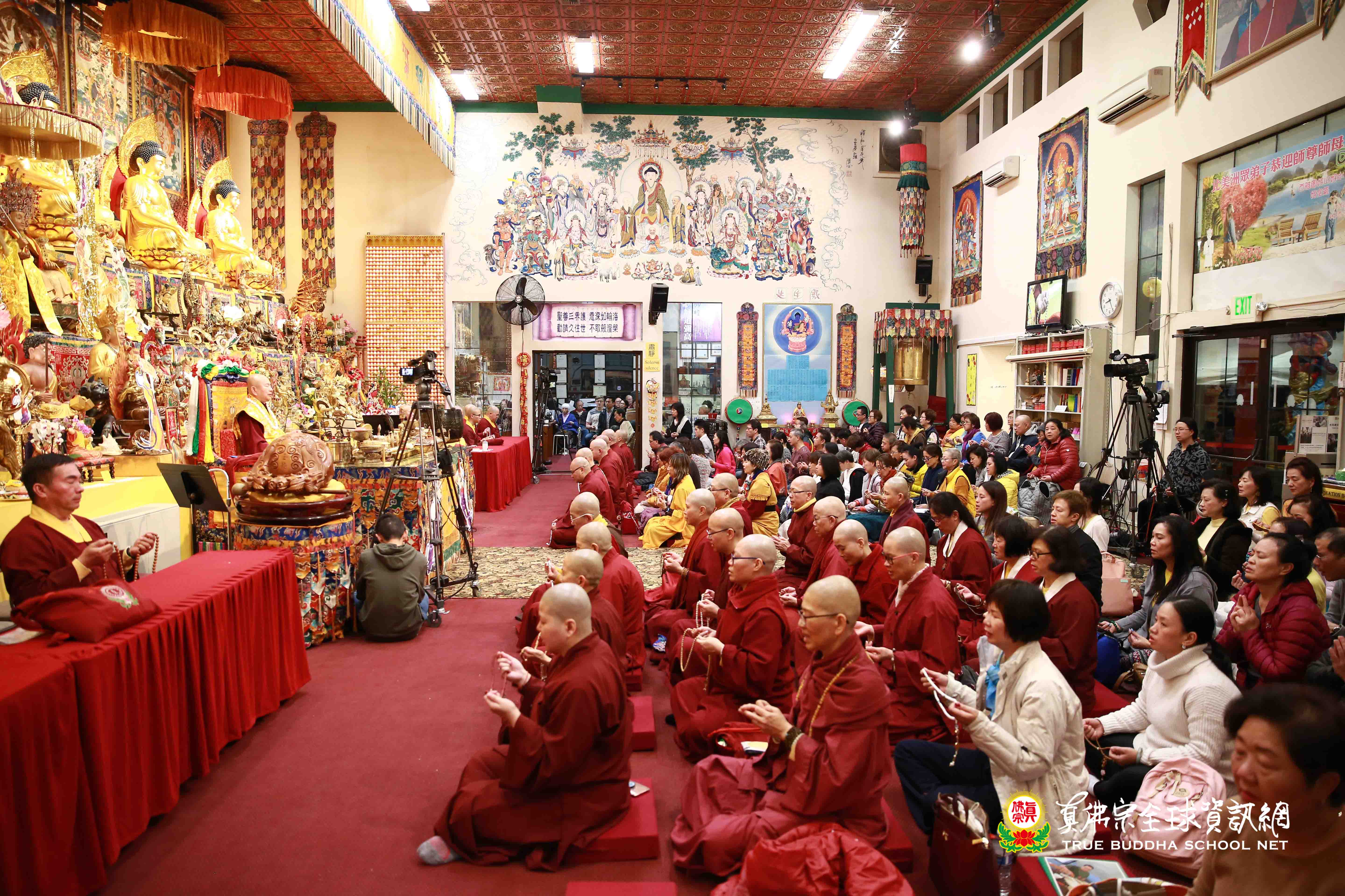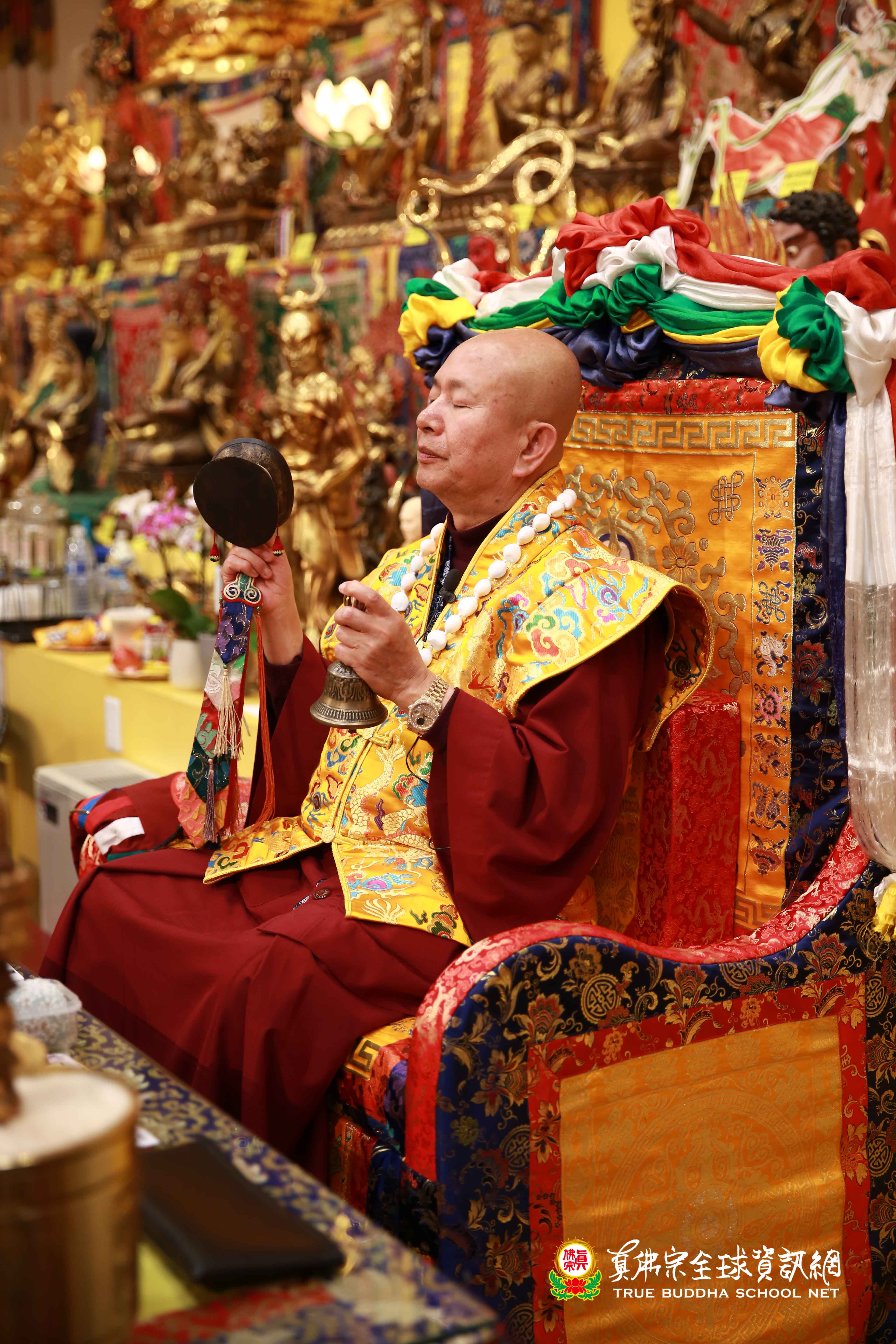 同修後,聖尊讚揚當晚的貴賓們,首先提到Teresa師姐無論是在宗委會、盧勝彥佈施基金會,或其它真佛宗的道場,她都是義務發心幫忙會計事務方面的問題,她有願力的發心幫忙,聖尊讚揚她有地藏王菩薩的精神。接著,聖尊提到法國大弘出版社范秀姬師姐,她翻譯聖尊文集成為法文,從校稿、設計封面到印刷出版,將譯好的書給圖書館或到大學,再到行銷,全部都是由她一手包辦。現在,還自己籌備要獨資在法國建立真佛宗道場,聖尊讚嘆道,這個就是地藏王菩薩的精神。聖尊說道,我們這裡就有現代的地藏王菩薩,他們發的願力都有地藏精神,他們發了願一定把真佛宗弘揚出去。