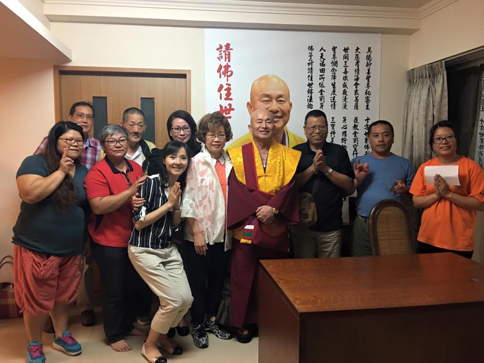 5月11日蓮生活佛與師母蓮香上師在搭機前,應弟子所求於林口「寶聚同修會」開光,賜墨寶及開示