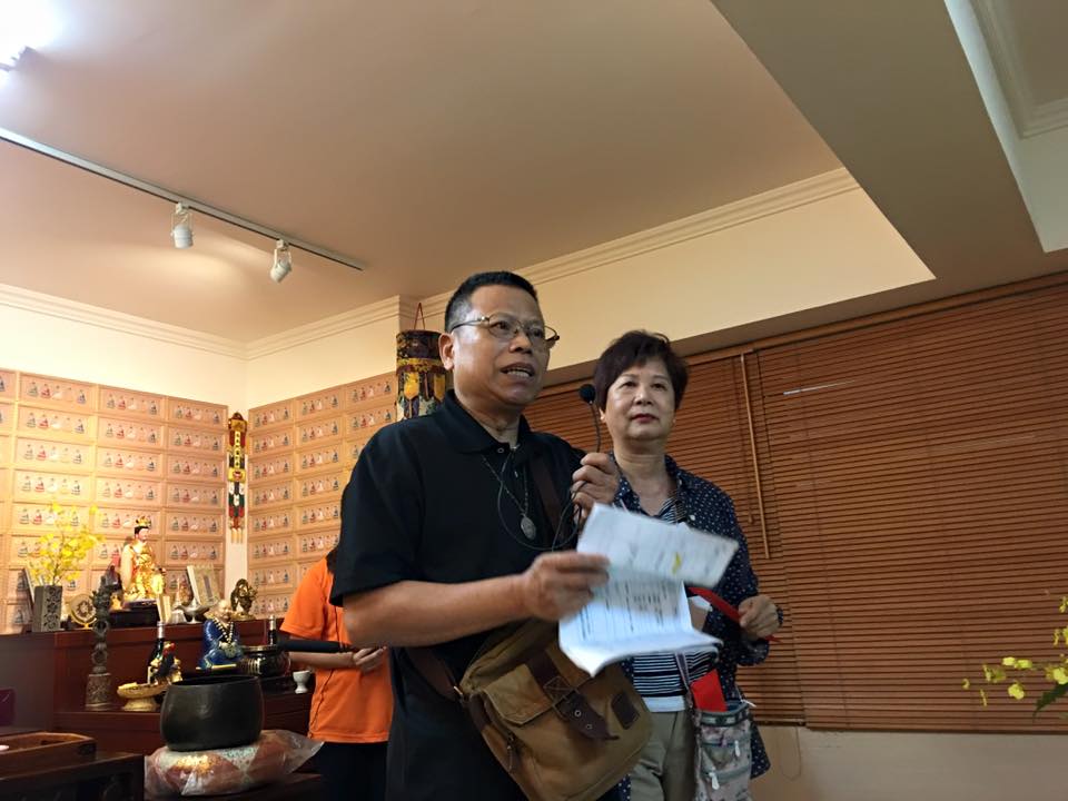 5月11日蓮生活佛與師母蓮香上師於搭機返回西雅圖前,傍晚應弟子所求於林口「寶聚同修會」開光,賜墨寶及開示。