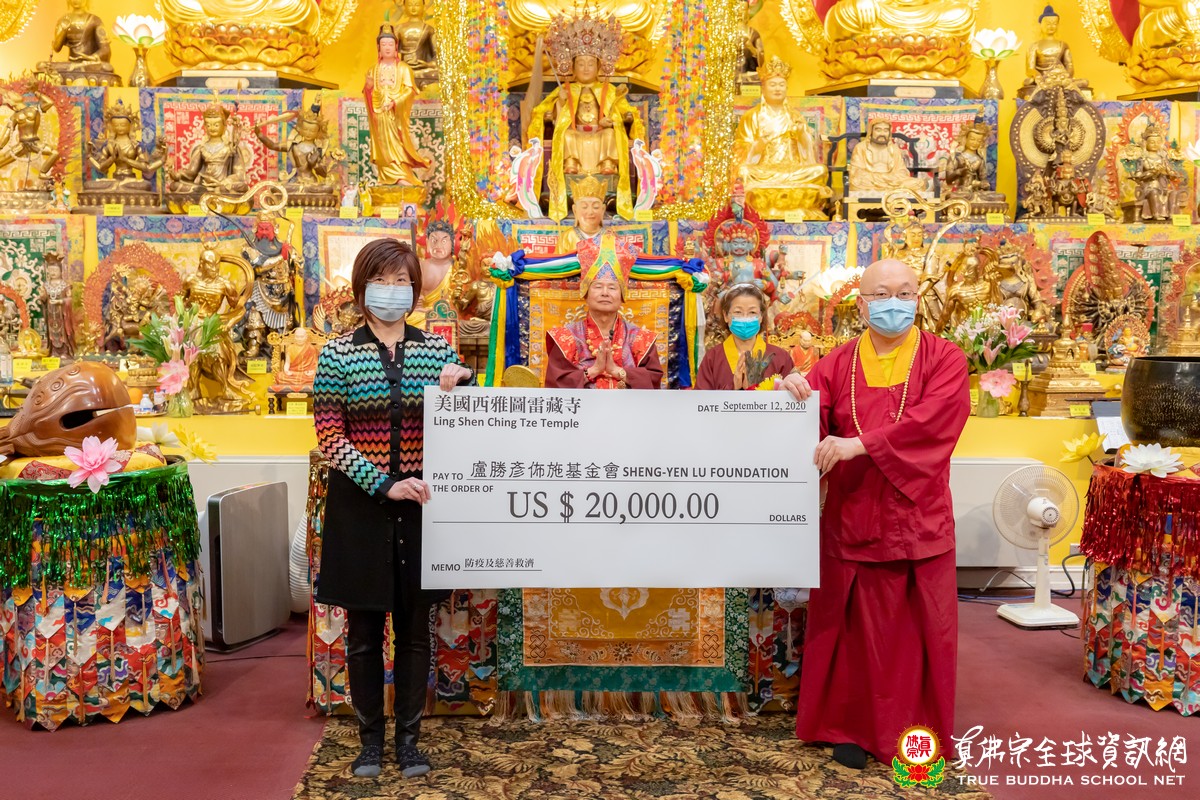隆重肅穆的秋季法會結束後,西雅圖雷藏寺秉持聖尊蓮生活佛的教導,人溺己溺、自他互換,深刻感受眾生的苦厄災難,特別在今晚的盛會,向盧勝彥佈施基金會捐贈兩萬美元的善款,藉由此次的拋磚引玉,希望有更多人能加入行善佈施的行列,一起來幫助更多需要被關懷的眾生。