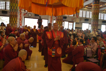 法會前,由「中觀堂」蓮嶝上師,蓮悅上師,蓮妙上師,以及代表們請法儀式2月28日恭請蓮生活佛盧勝彥法王在台北自由廣場主持「大幻化網法會」。