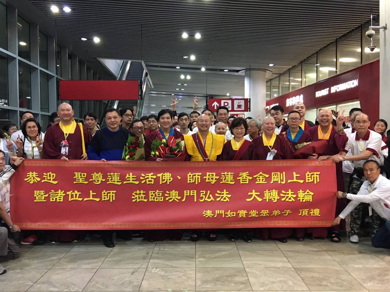 1月3日蓮生活佛、蓮香師母一抵達澳門,馬上受到「如實堂」眾弟子的熱烈歡呼:「師尊、師母,我們愛您~」