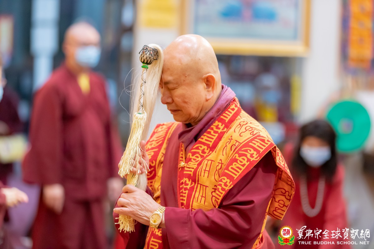 2020年10月3日聖尊蓮生活佛盧勝彥主持西雅圖雷藏寺的同修阿彌陀佛本尊法,師尊開示持名唸佛是佛法裡最方便、容易做到的易行道。阿彌陀經提到的七日唸佛,在臨終時要能一心不亂的唸佛,不管是旁邊的人幫忙唸,或者自己本身唸,就能夠往生佛國淨土。