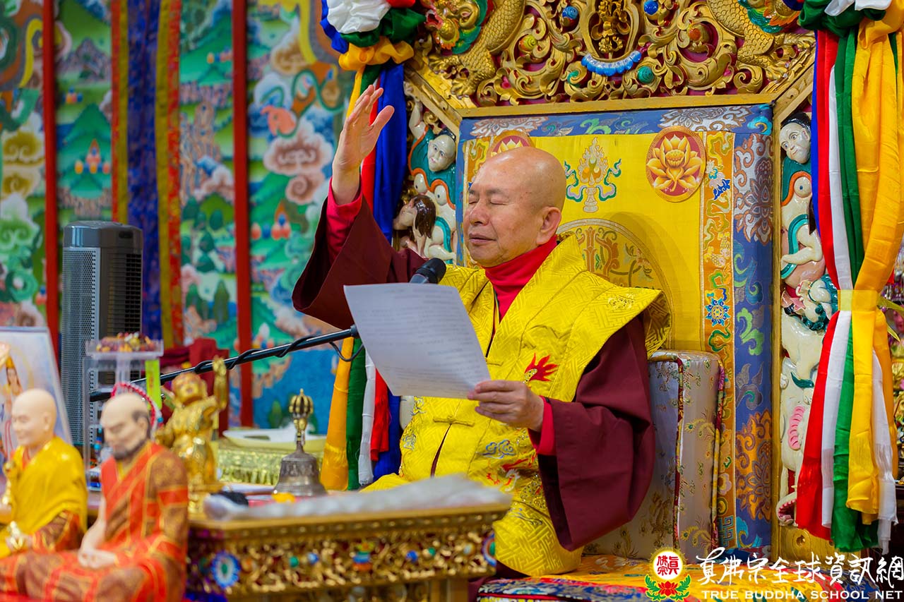 接著蓮生法王開示《道果》,「五煩惱字之別」,嗡-生癡、阿-生貪、吽-生瞋、恰-生慢、呸-生嫉,這五個字在身內各有分佈,各有其作用。