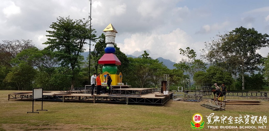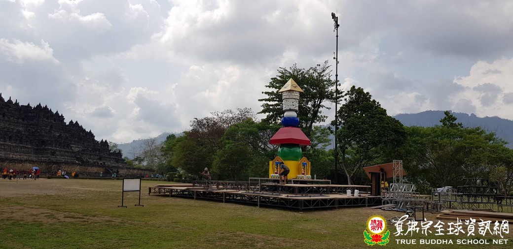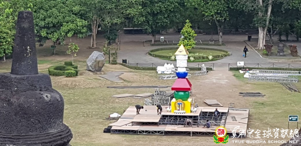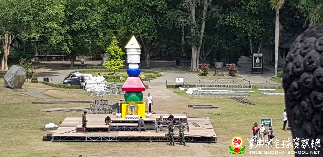 【宗委會印尼雙聖交輝】2019-11-21 時輪壇城的建立 2019年11月21日,真佛宗世界宗委會開始建立位於印尼婆羅浮屠前的時輪金剛壇城。婆羅浮屠上的佛像遙望時輪金剛壇城,見證這歷史性的一刻。