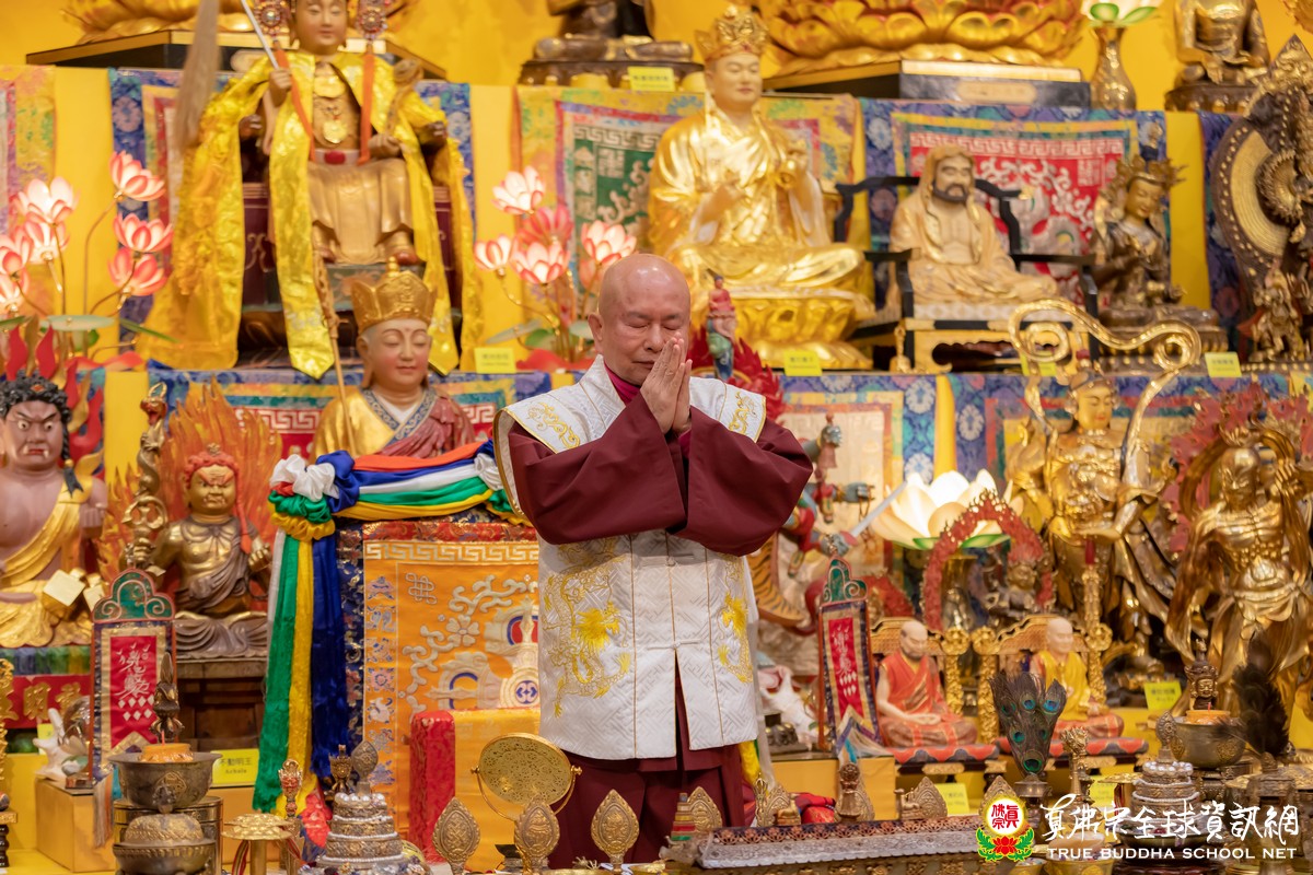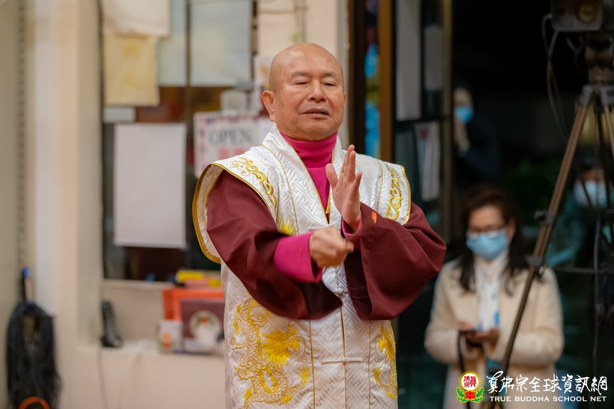 師尊帶領大家敬禮傳承祖師、壇城三寶、同修主尊觀世音菩薩後,用各種語言向大家親切問好!