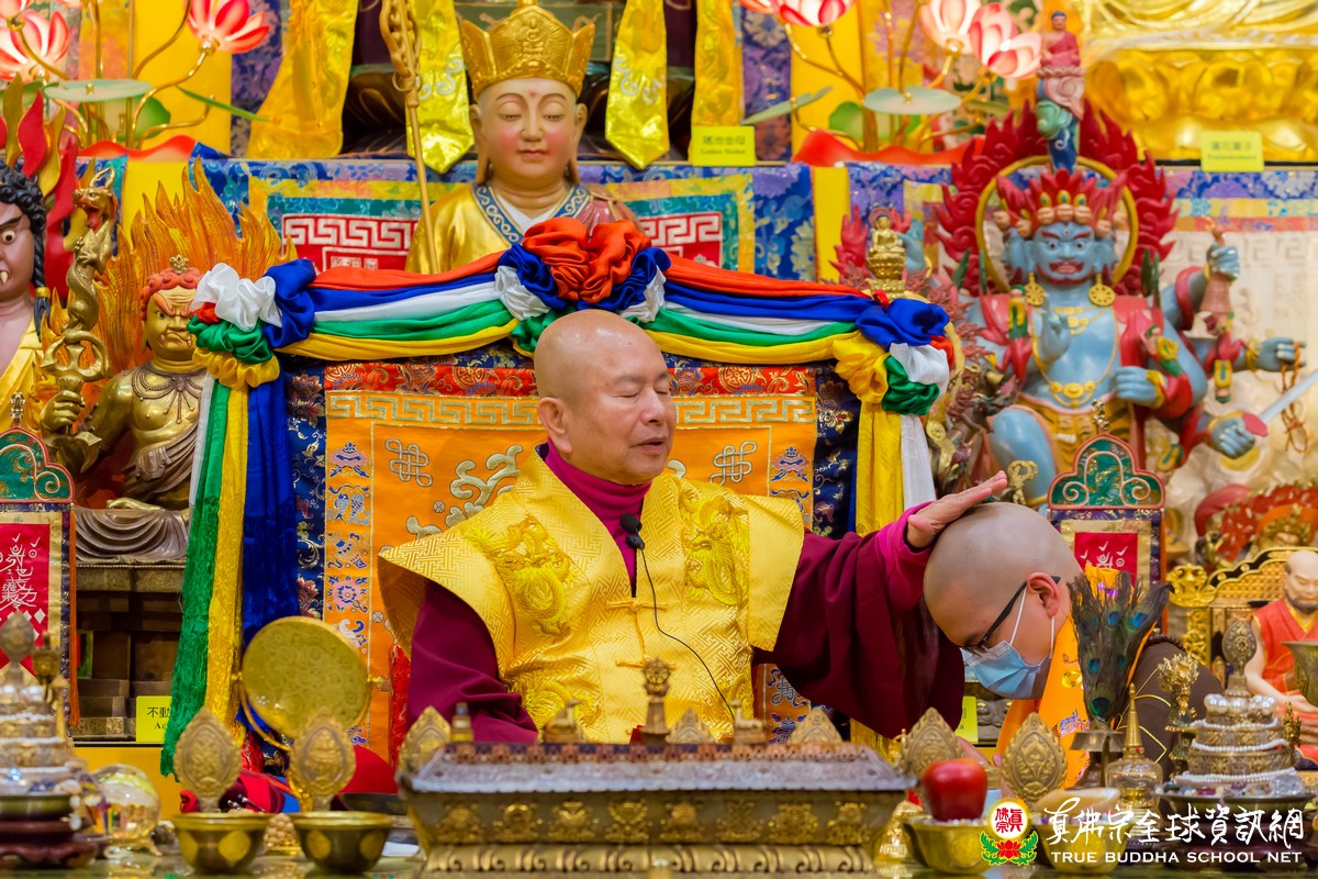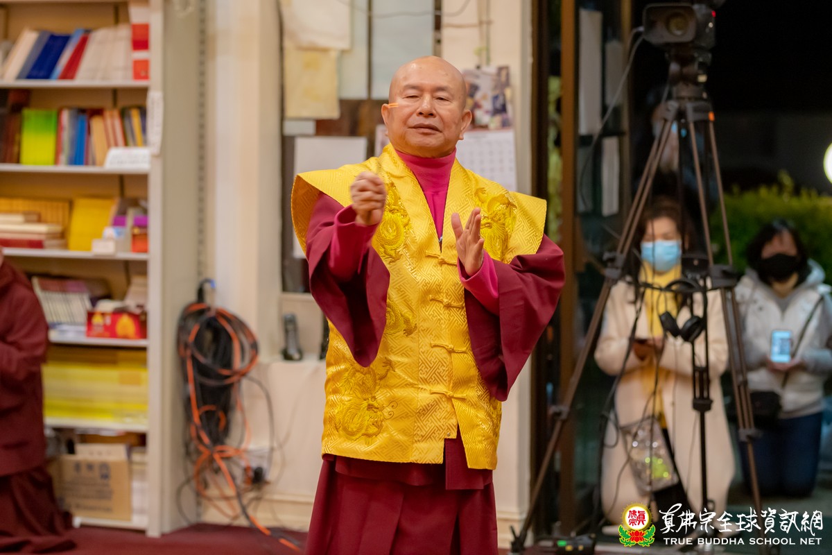 在肅穆莊嚴的同修後,聖尊一如既往以各國語言,熱情的跟現場及網路收看的弟子們打招呼。聖尊首先談到今晚的修法本尊大準提佛母,以前常常唸:「稽首皈依蘇悉地,敬禮佛母大準提」,當中的「蘇悉地」就是佛陀講的戒律。佛陀最後要離開世間的時候,阿難問:「佛陀走了,我們將來要皈依誰?」佛陀講:「皈依戒律」,蘇悉地就是戒律,所以守戒是非常重要的。準提佛母有兩個金剛號,最勝金剛、清淨金剛,因為準提佛母的威力和清淨都是最勝的。