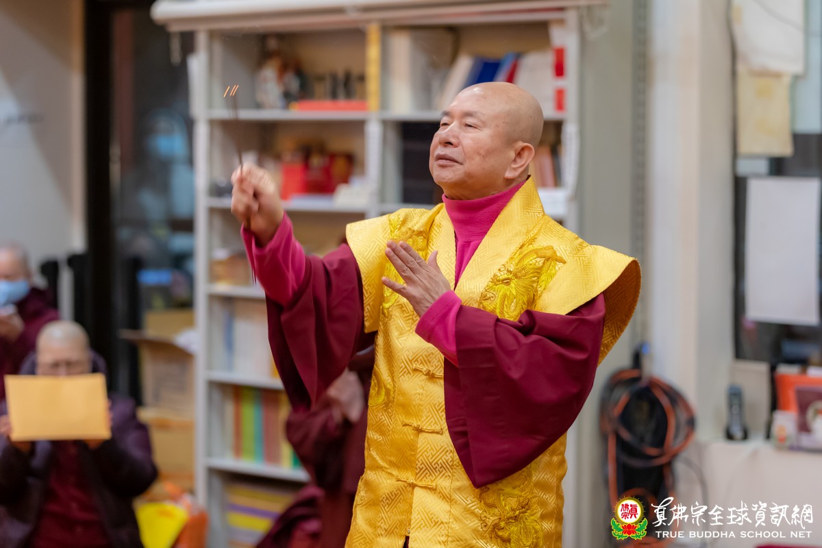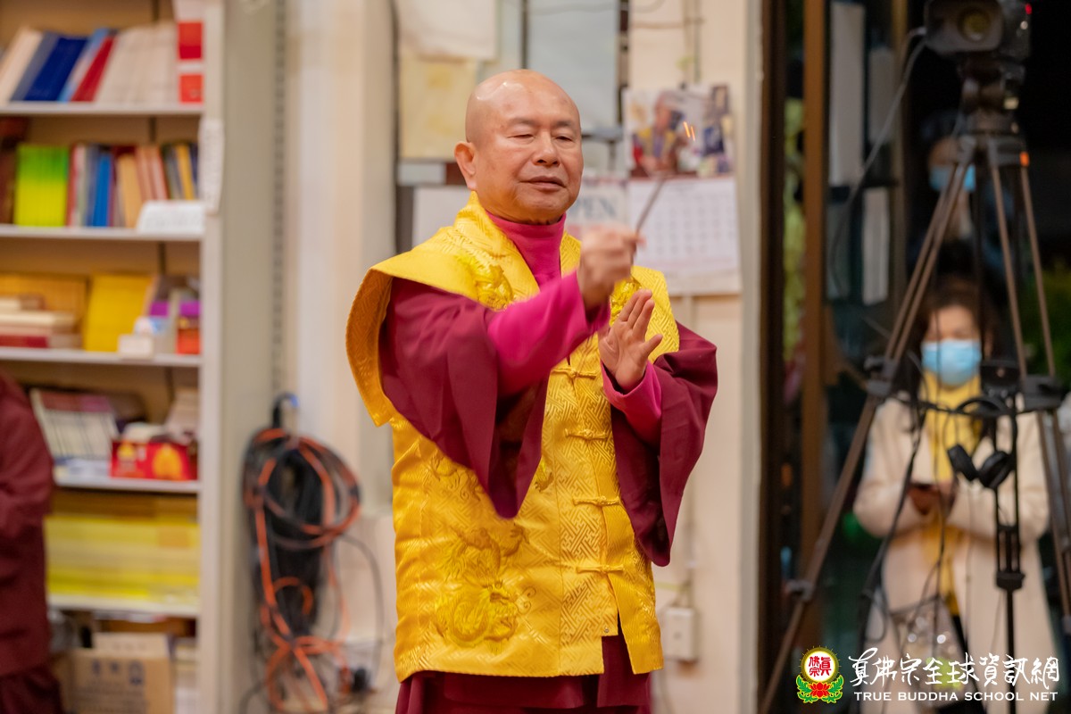 精彩絕妙的開示結束後,聖尊慈悲為大眾加持大悲咒水及為佛像開光。會後,聖尊慈悲以拂塵為大家加持賜福。聖尊在最後也溫馨關懷的叮囑弟子們,西雅圖天氣濕冷,要穿衣服注意保暖,避免感冒。再過幾日就是聖誕節了,歲末之際,聖尊也祝福大家Merry Christmas and Happy New Year。弟子們也一心誠摯的祝願未來新的一年,聖尊與師母都能健康平安,能天天都開心,事事皆如意。