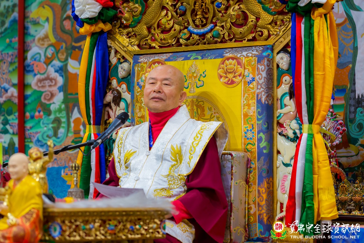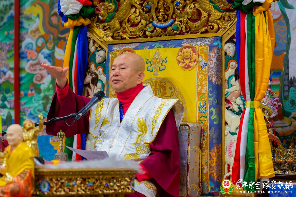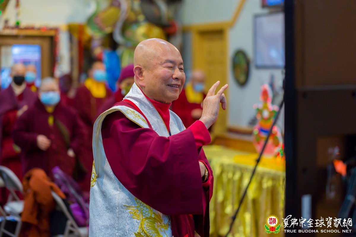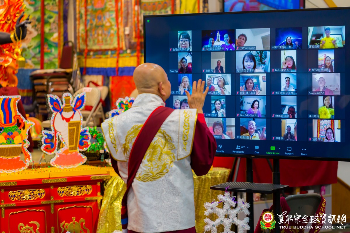 2021年1月3日,西雅圖彩虹雷藏寺迎來了2021年的第一場法會,主尊就是真佛宗派最殊勝的大白蓮花童子。法會由聖尊蓮生法王主壇。冬去春來,年復一年,萬物變化,不可逆轉,但唯獨不變的就是師徒的感情,一如既往,法王一到護摩殿,便向在Zoom上參加法會的各國弟子打招呼,大家通過Zoom的屏幕傳遞著對法王的思念和感恩。 護摩法會隆重進行,在法王開示前,大家觀賞了一段《為世界祈福24小時持咒》的精彩感恩視頻,看到世界各地的道場共同努力,轉動殊勝的法輪為世界祈福,各地弟子齊心合力認真持咒的畫面讓大眾感動連連。開示時法王也特別再次迴向了所有參與持咒的道場法務興隆,及持咒者修行成就。接下來,法王又宣佈了一個好消息:真佛宗網路大學的第一門課程《包羅萬象的佛學》正式上線,將以「雲端教室」互動交流的方式授課。歡迎大家踴躍參與學習。