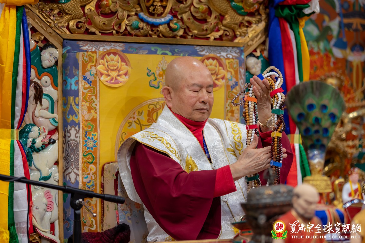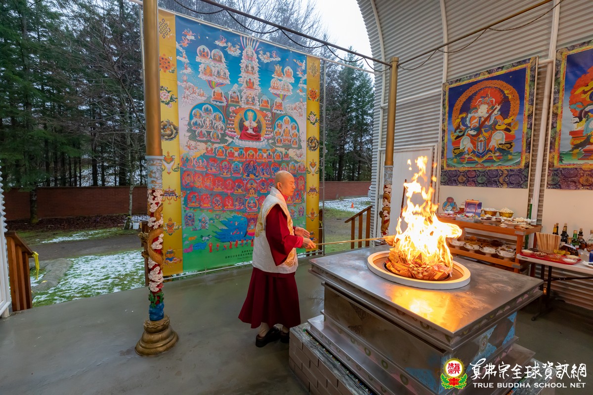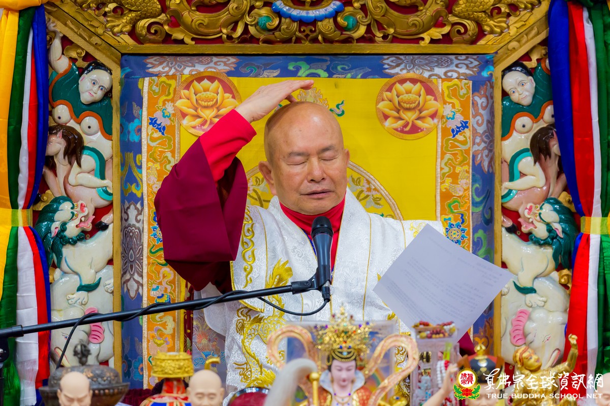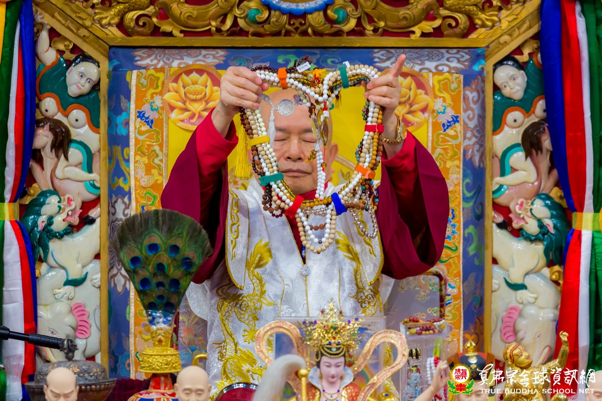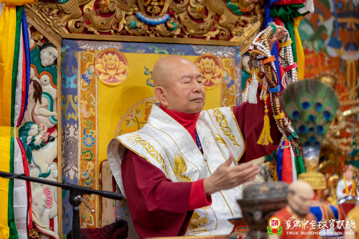 開示後,法王再度與雲端Zoom上的弟子打招呼,大家依依不捨的與法王告別。最後法王賜予現場弟子「大白蓮花童子」的灌頂,就此,充滿法喜及加持力的護摩法會圓滿結束。