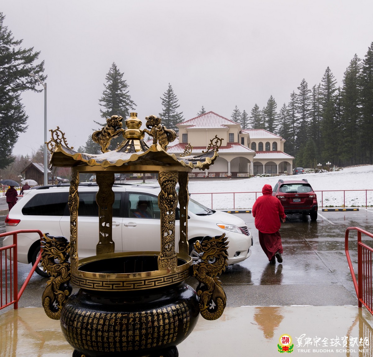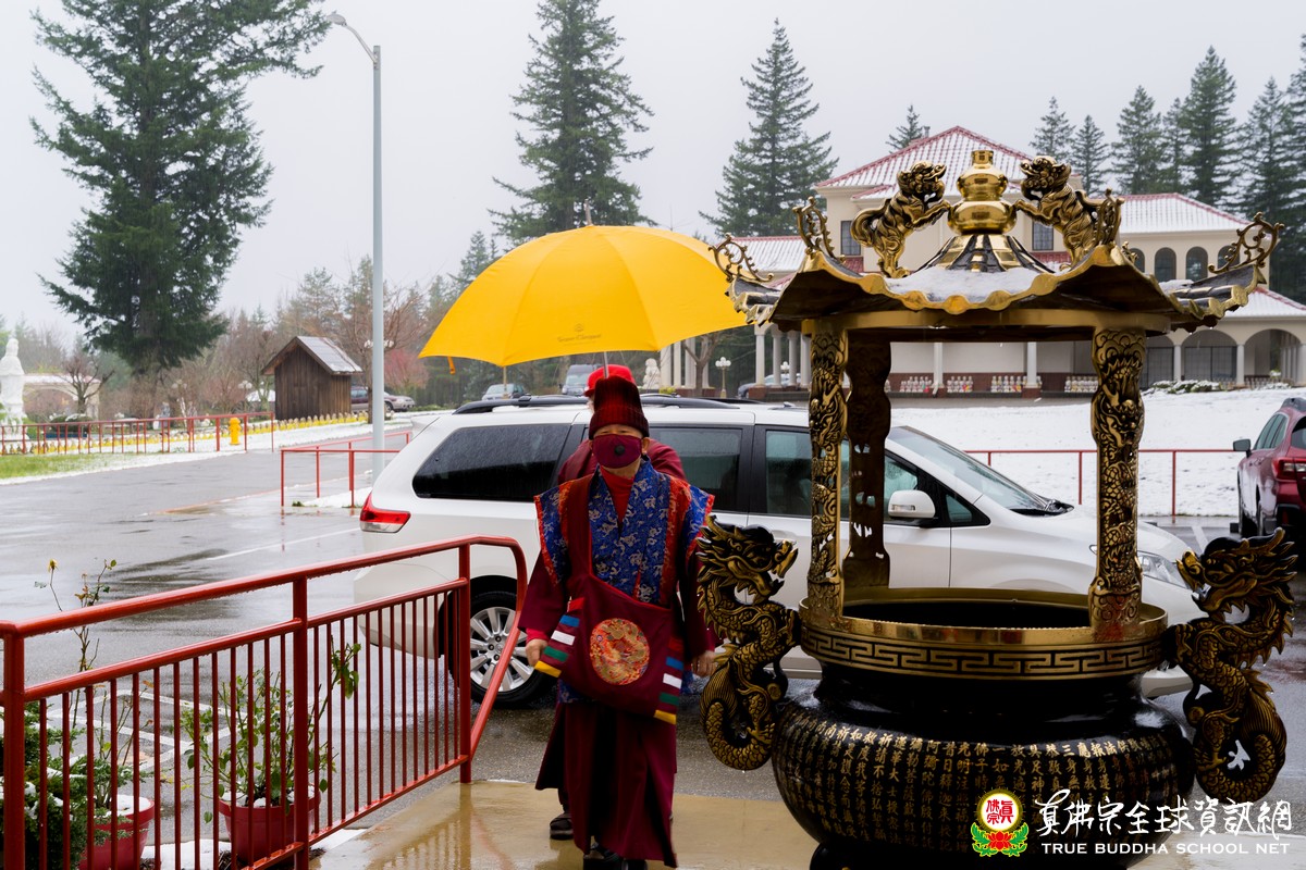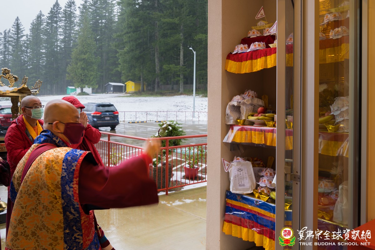 今天是彩虹雷藏寺在全新二零二一年的第一場蓮花童子護摩法會,昨夜的一場大雪,讓彩虹雷藏寺成了銀白色的世界,放眼望去一片潔皙的純白,讓人心靈有一種安寧淨化的覺受。希望二零二一年所有的人心都能得到如白雪般純淨祥和的洗禮,所有的疫情災難能得到化解。