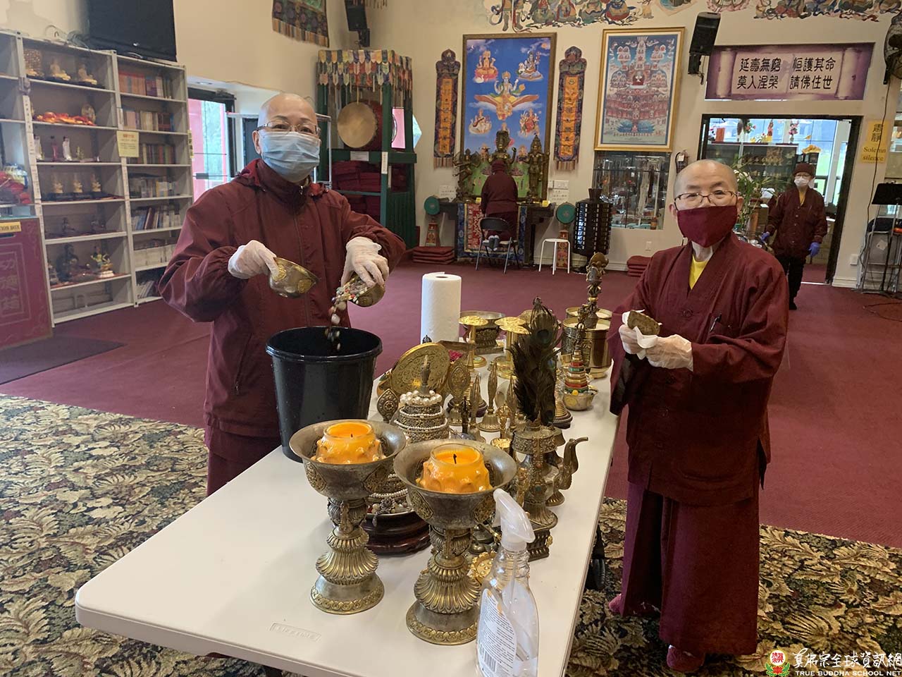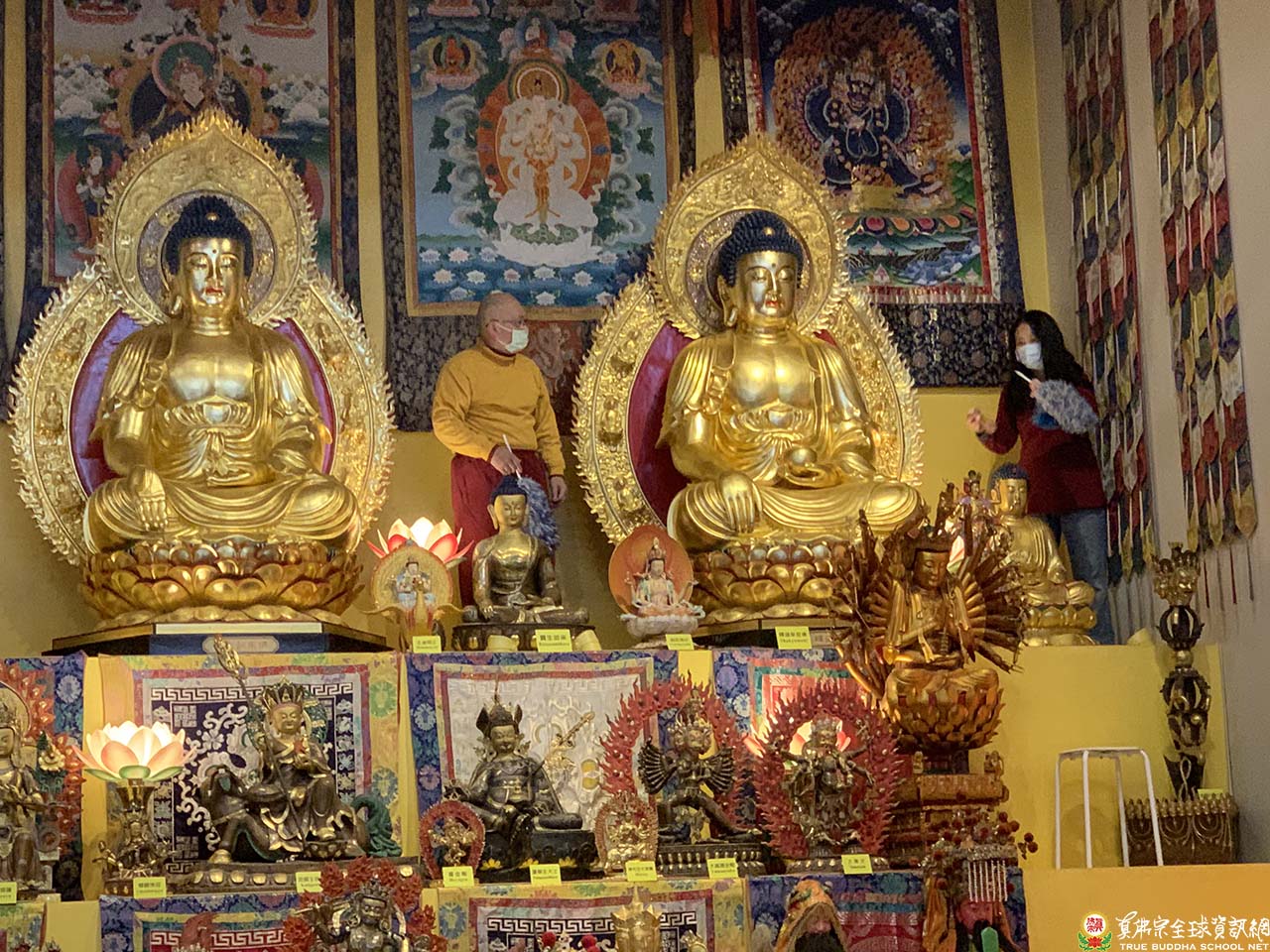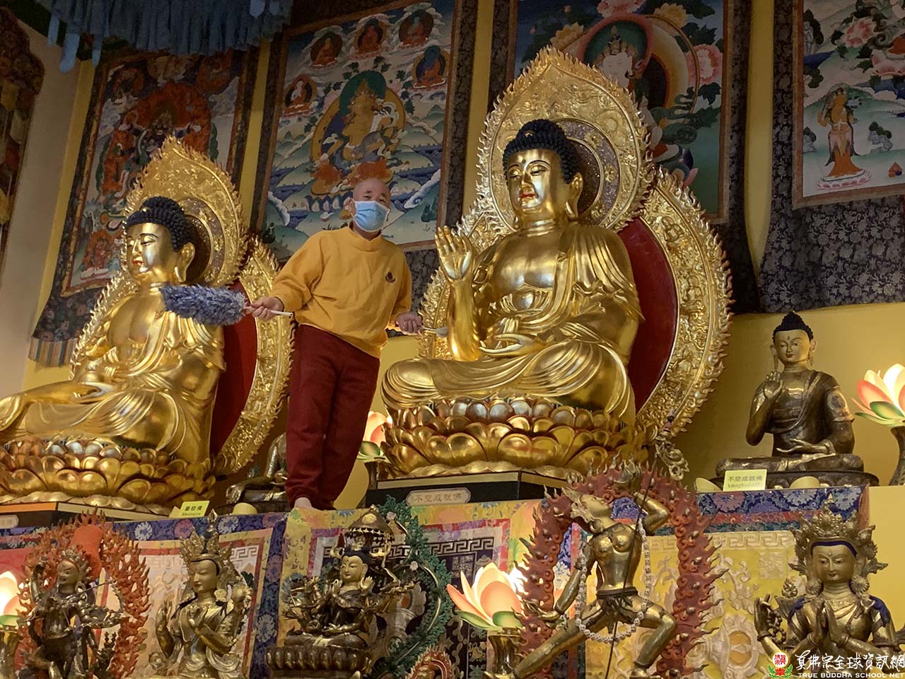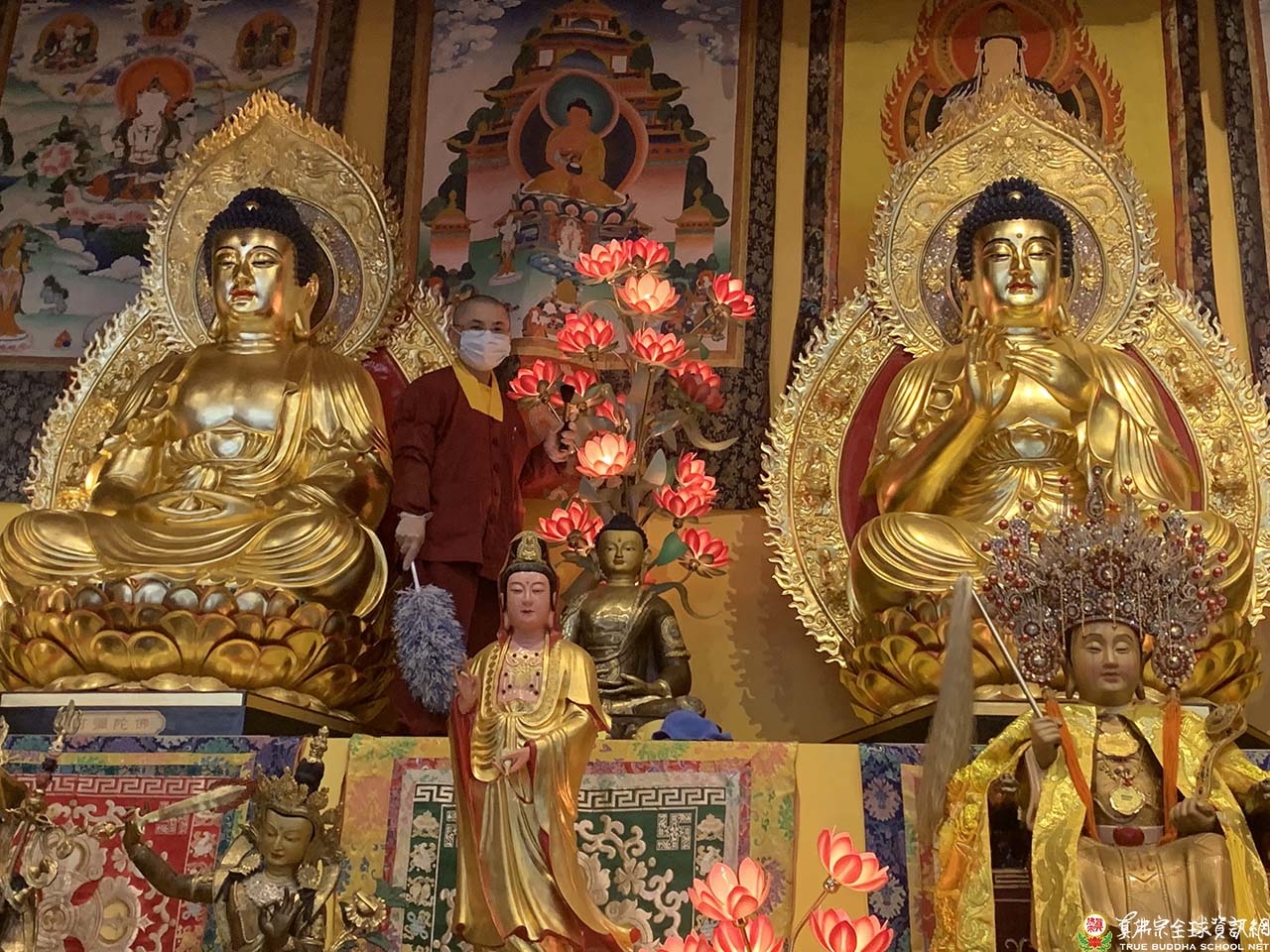 2021年元旦剛過,美國西雅圖雷藏寺為了迎接農曆新年的到來,在1月6日進行一年一度的歲末大掃除,仔仔細細的清潔壇城,整個大雄寶殿變得煥然一新、澄澈明淨。